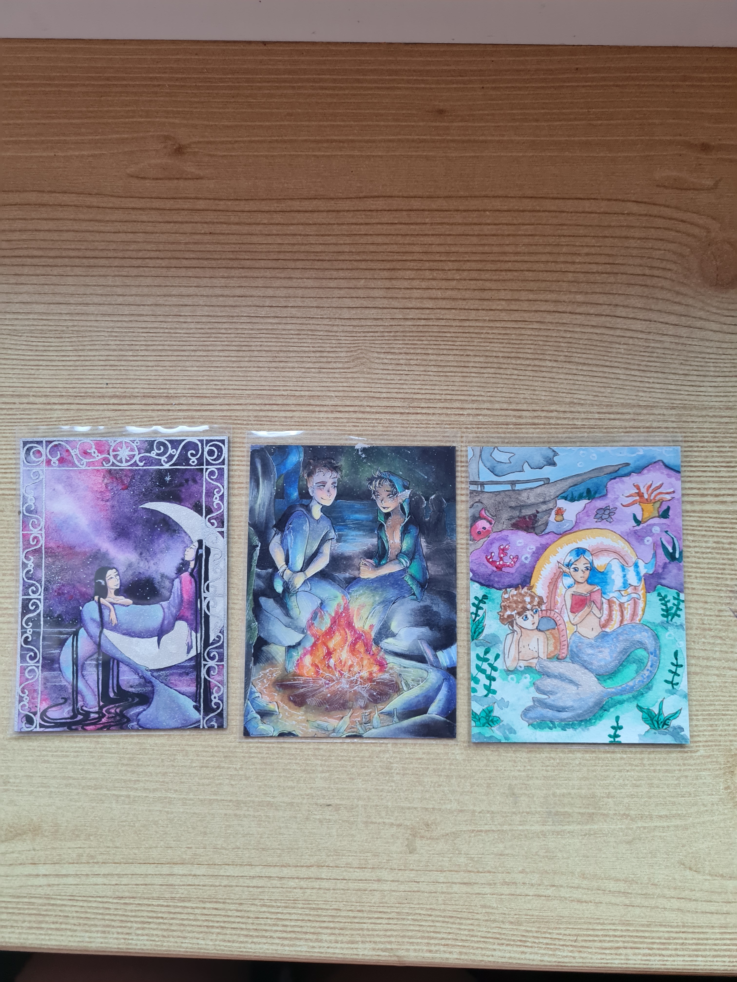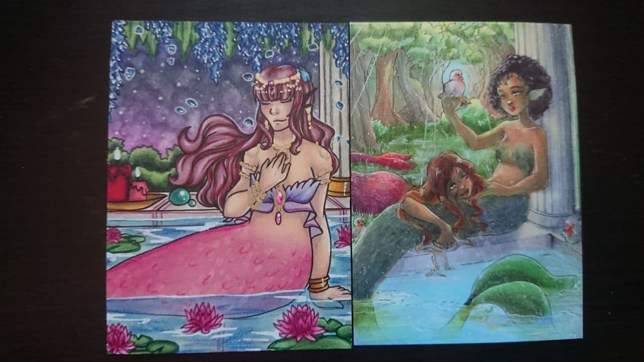 Die beiden sehen so wunderschön aus, aber alles an der Karte ist so liebevoll und detailliert gestaltet. Der Hintergrund rahmt die Szene sehr schön ein und… ich liebe alles an ihr. Die Farben leuchten so schön, der Verlauf an ihrer Flosse, das Glitzern und Schimmern genau an den richtigen Stellen. Einfach wunderschön!