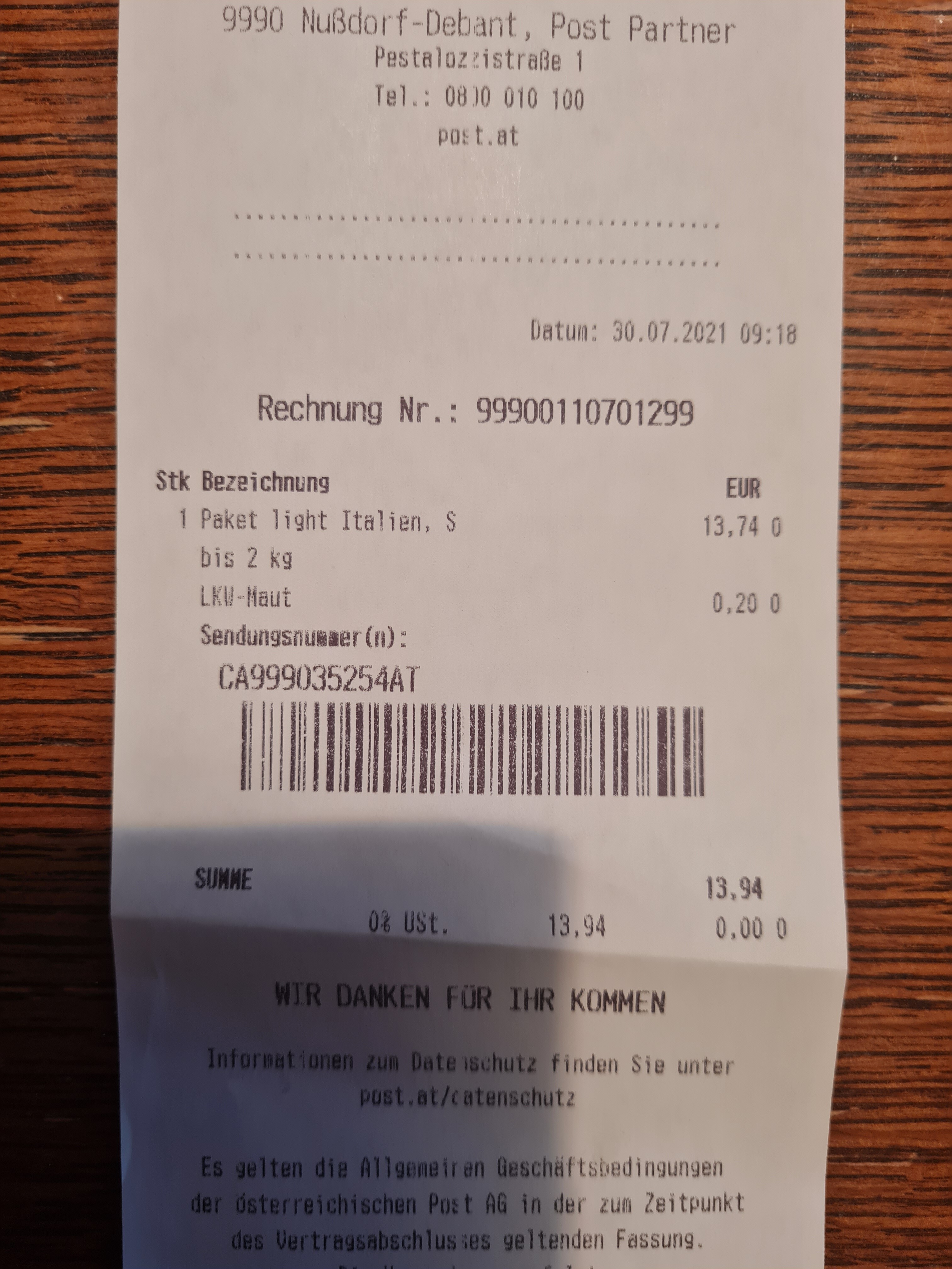 Sendungsverfolgungnummer schreibe ich dann nochmal hier rein.