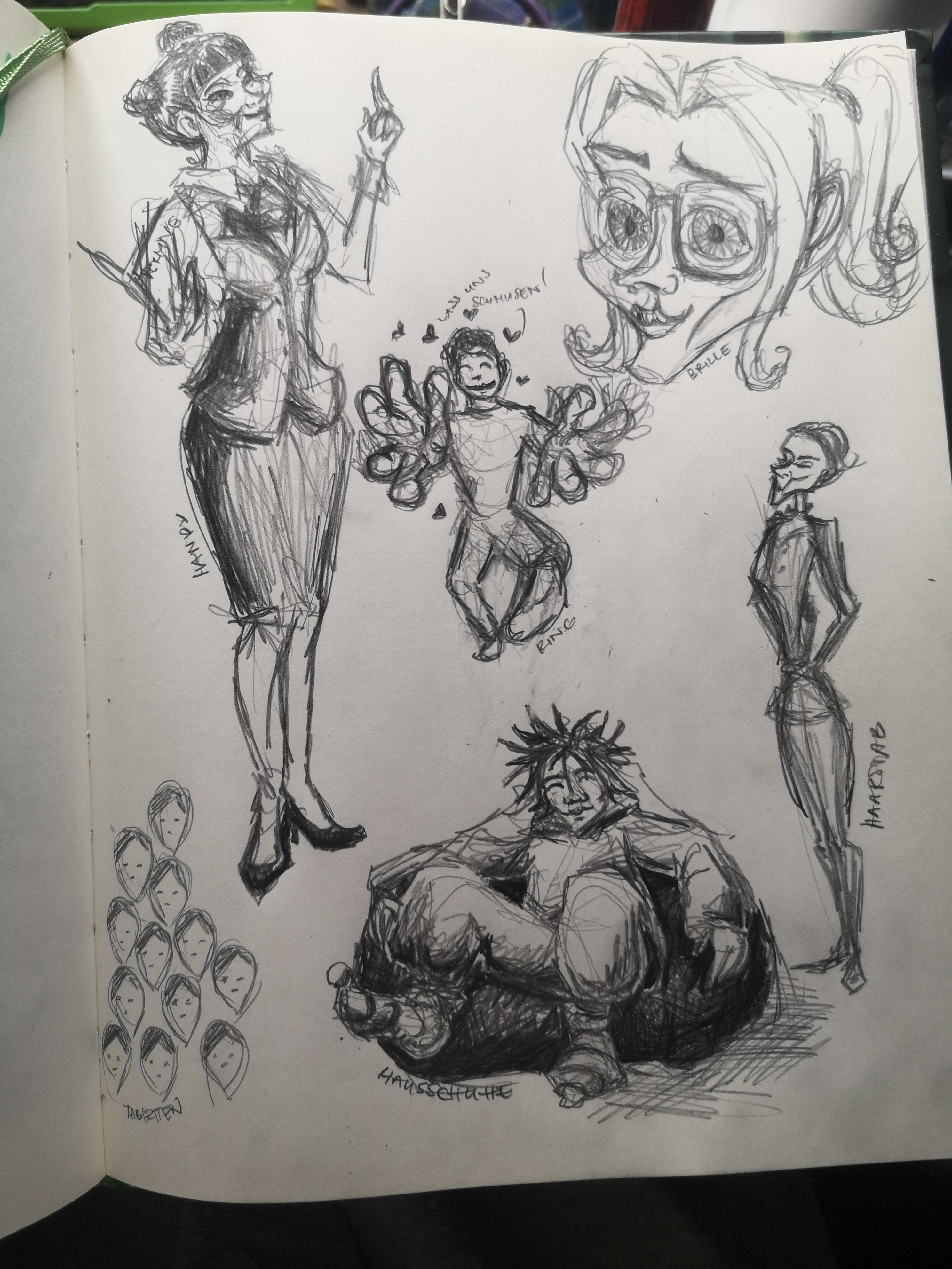 Kann leider nichts zeigen, weil ich mein Skizzenbuch im Bus liegen gelassen hab nachdem mir gestern aufgefallen ist, dass ich im falschen Bus bin und dann schnell raus musste :(