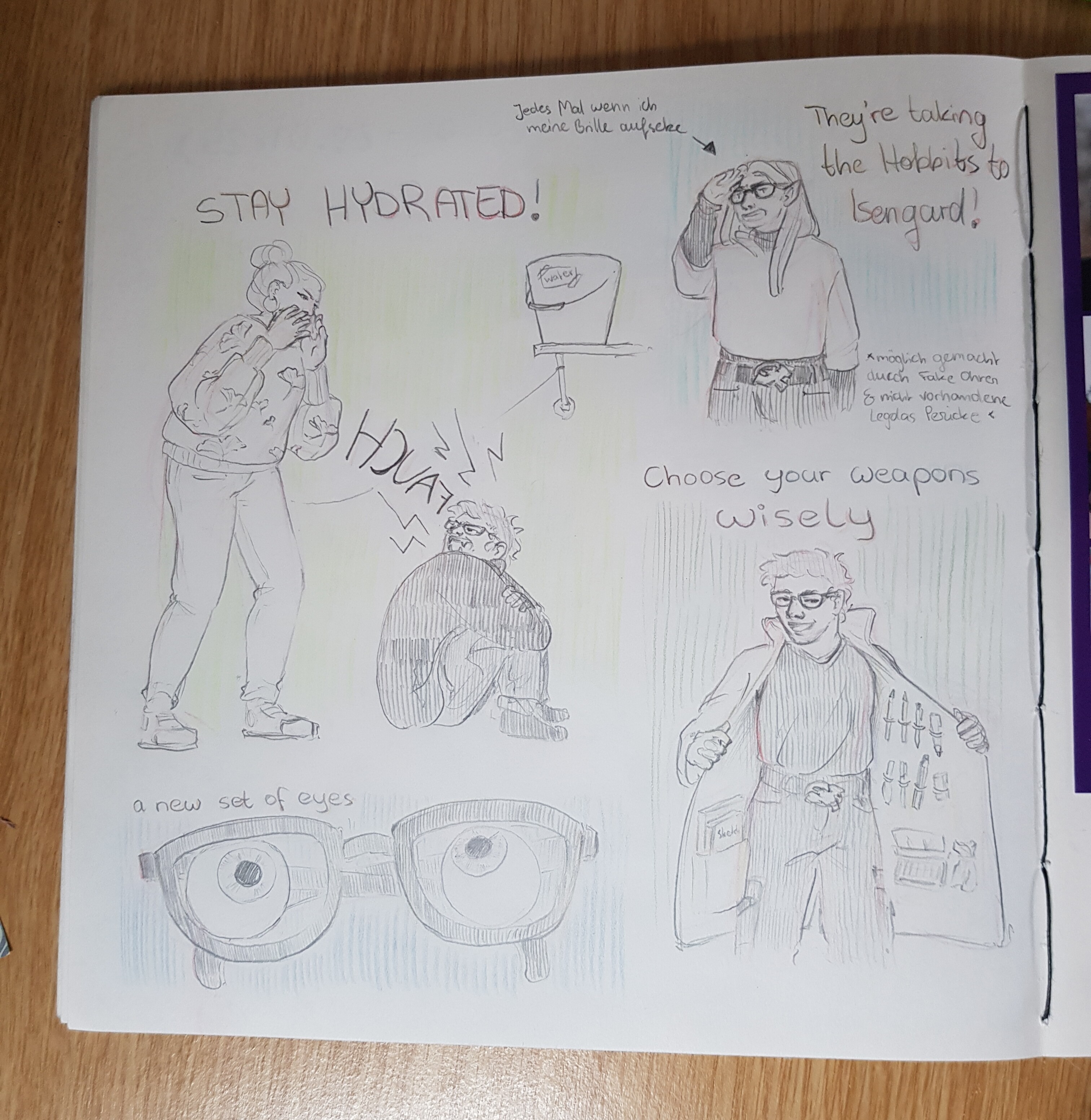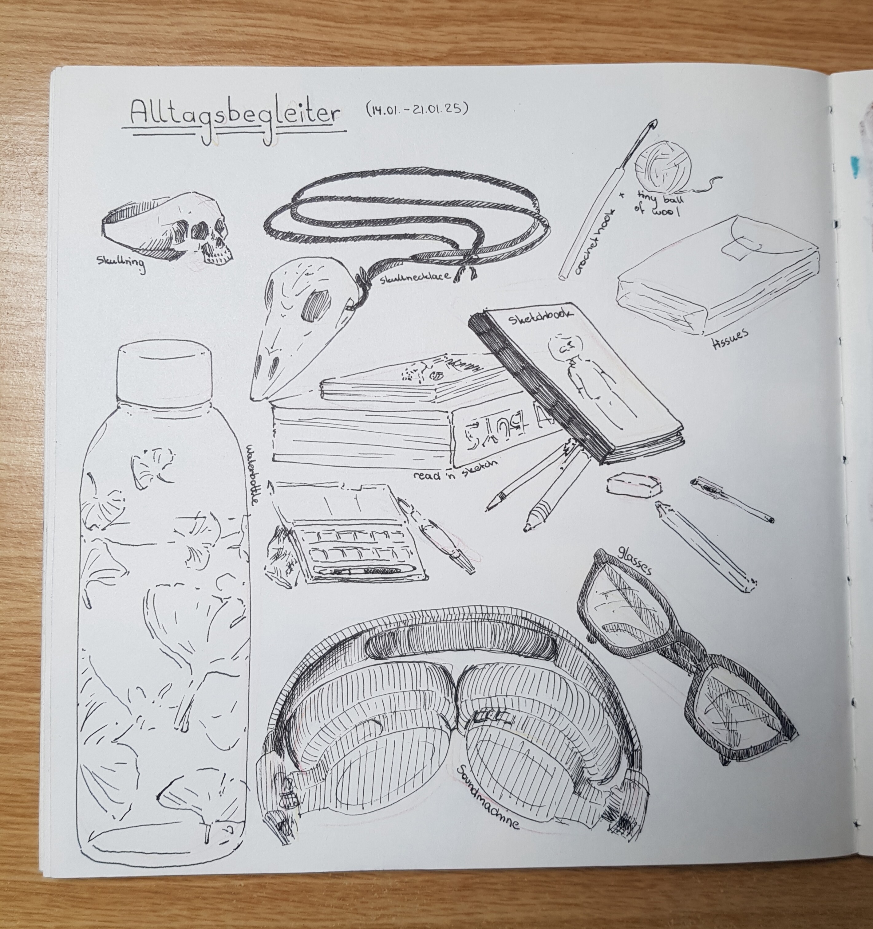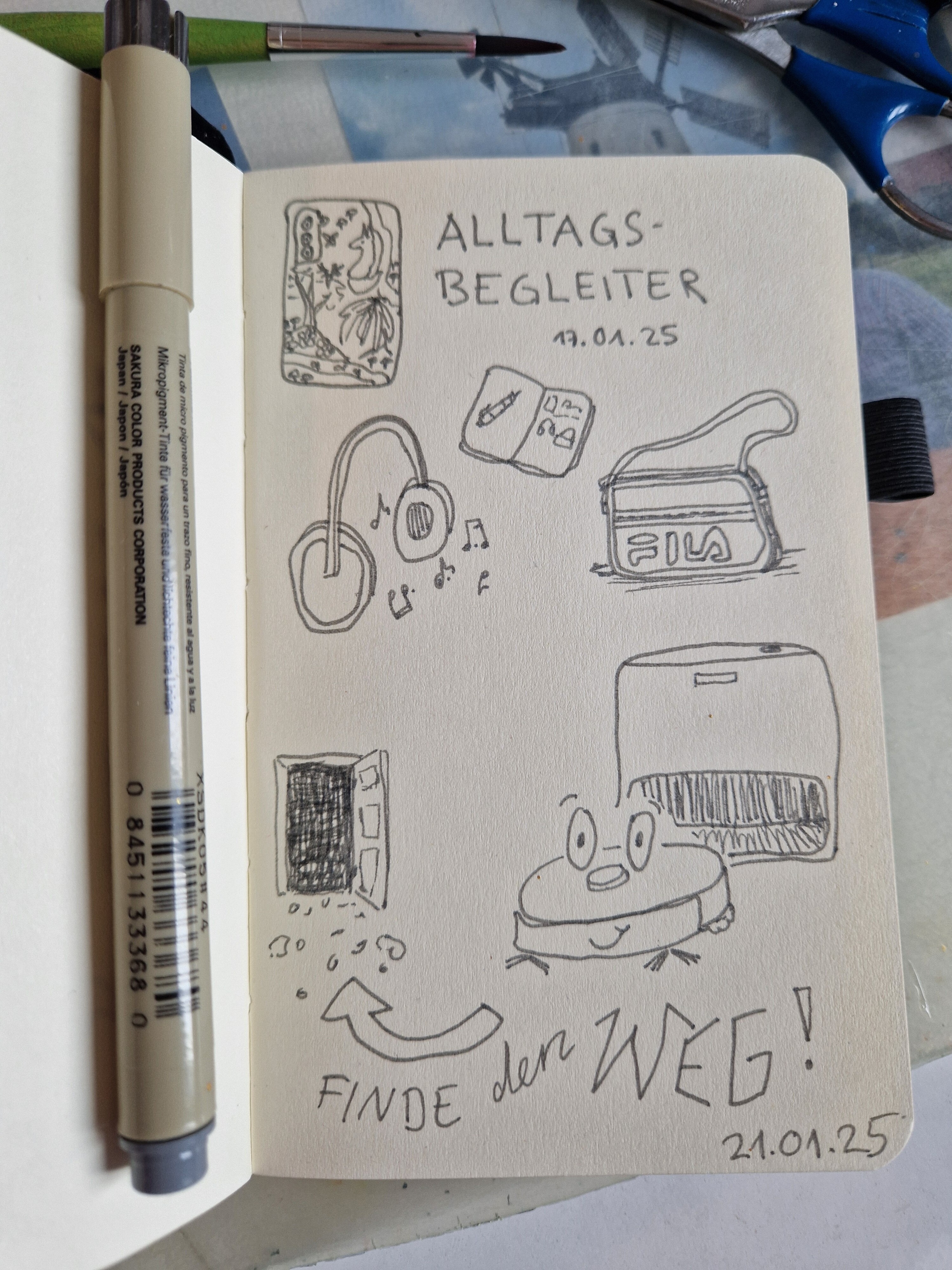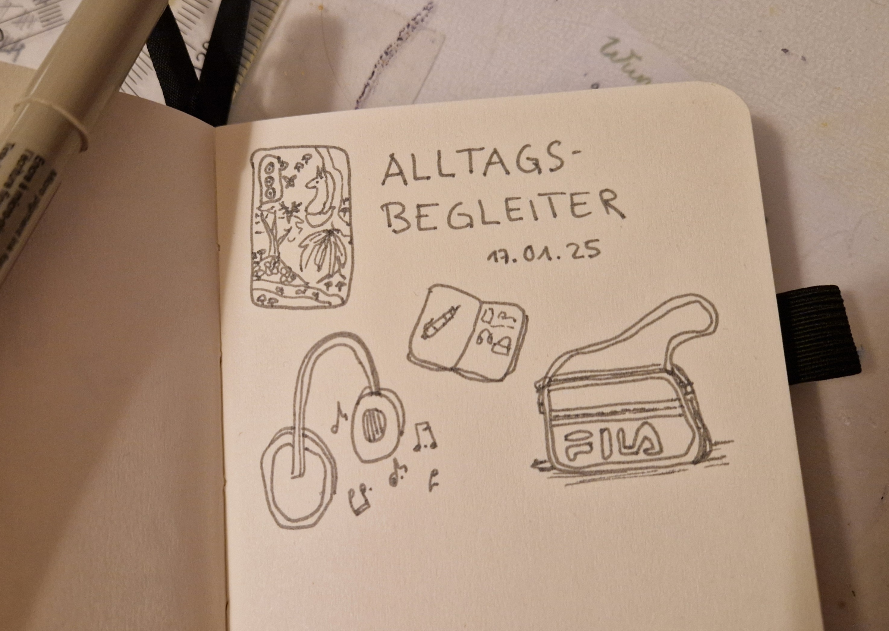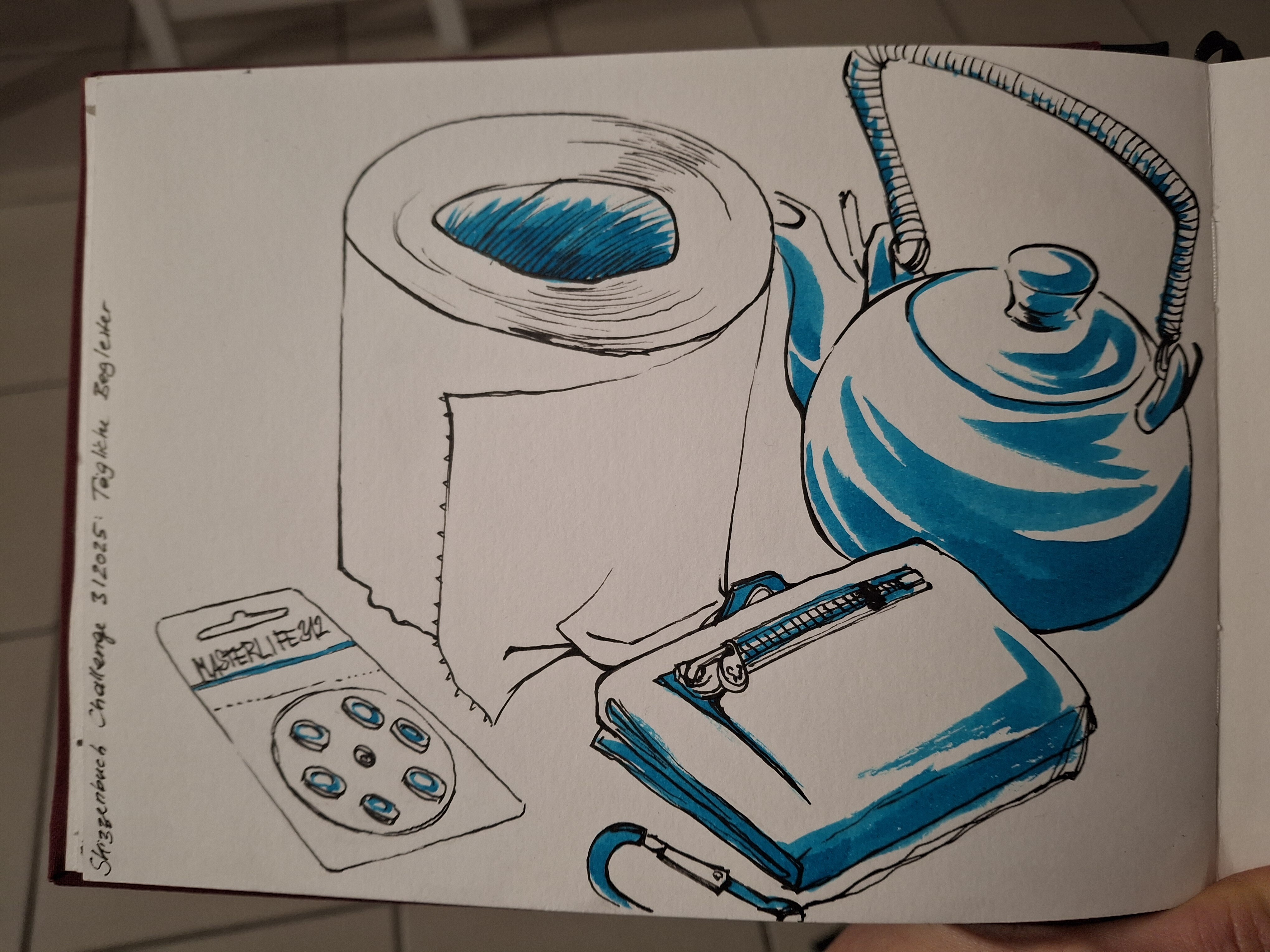 Nachdem ich gestern etwas verspätet die Alltagsbegleiter gezeichnet habe, hat mein Hirn heute alle Pläne aus dem Fenster geworfen, um zwei Skizzenbuchseiten mit dem aktuellen Thema zu füllen x’D