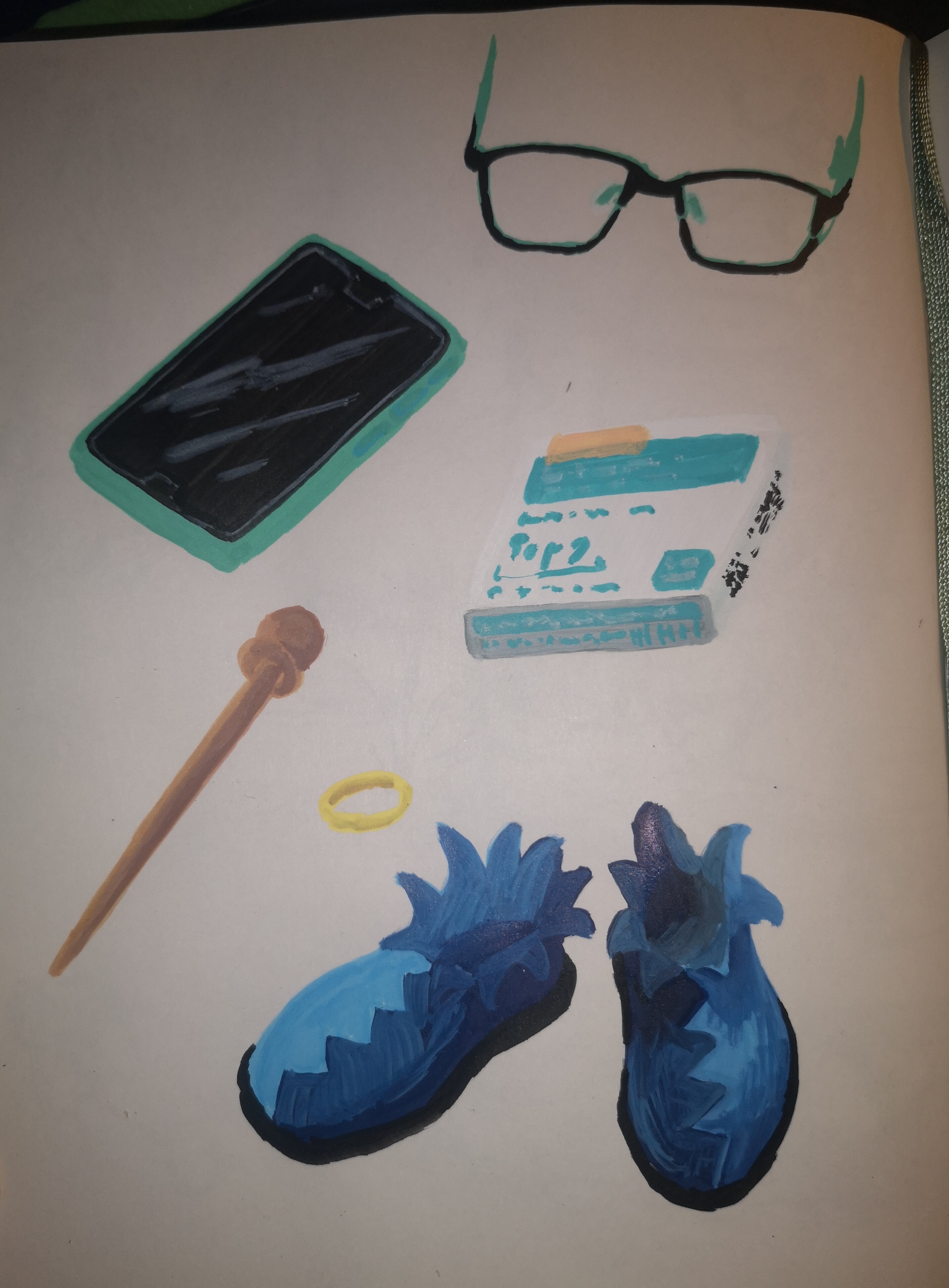 Hey, ich hab Probleme damit das mein Skizzenbuch zu schnell voll wird und ich mich nicht um ein neues kümmern will, also hab ich mal die 3 1/2 Sachen gemalt die ich immer dabei hab. Schlüssel ist Optional, wenn ich nicht mit meiner Ehekröte rausgehen, nehm ich ihn nicht mit.