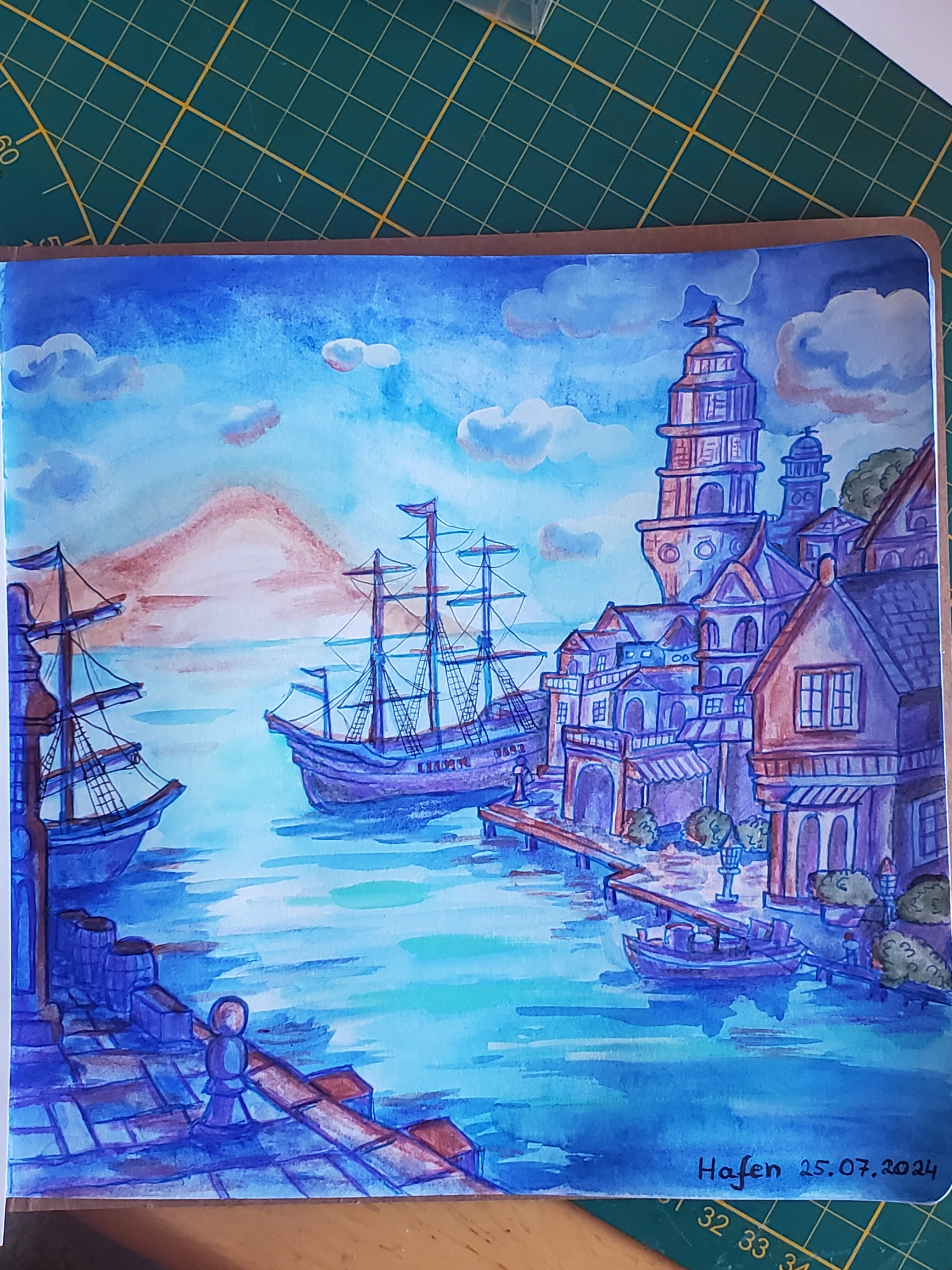 Die Skizze entstand mit Acrylmarkern (teilweise mit Pinsel und Wasser vermalt) im von @antaresnox gebundenen Schach-Skizzenbuch mit verschiedenfarbigen Papieren (hier: eine knallrote Seite), von dem ich nach wie vor sehr begeistert bin.