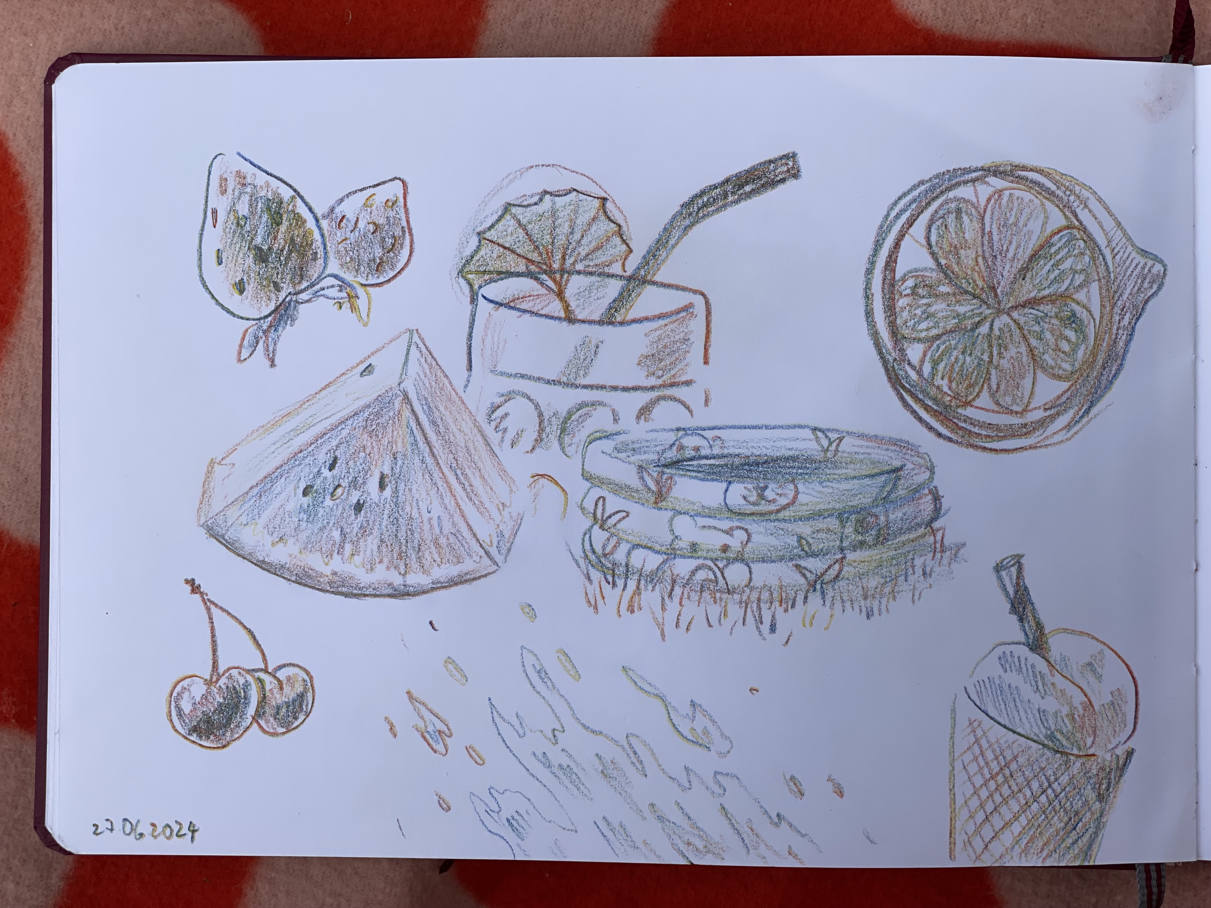 Bin mal heute zum Zeichnen gekommen während ich auf der Picknickdecke saß und Wassermelone gegessen habe.