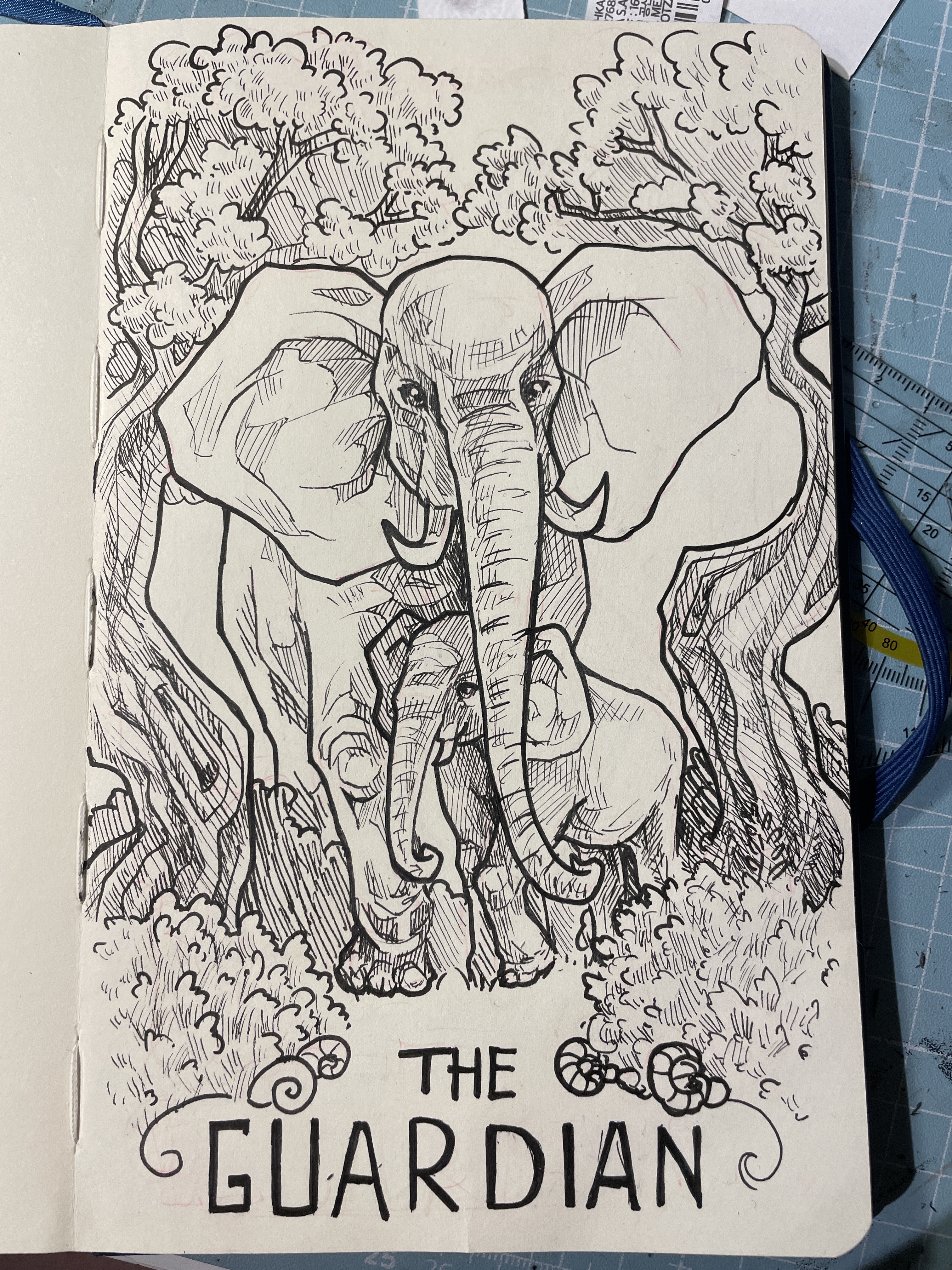 Komplett ohne Vorzeichnen einfach mal direkt den Liner genommen. Ging eigentlich ganz gut, außer, dass ein paar Proportionen etwas off sind