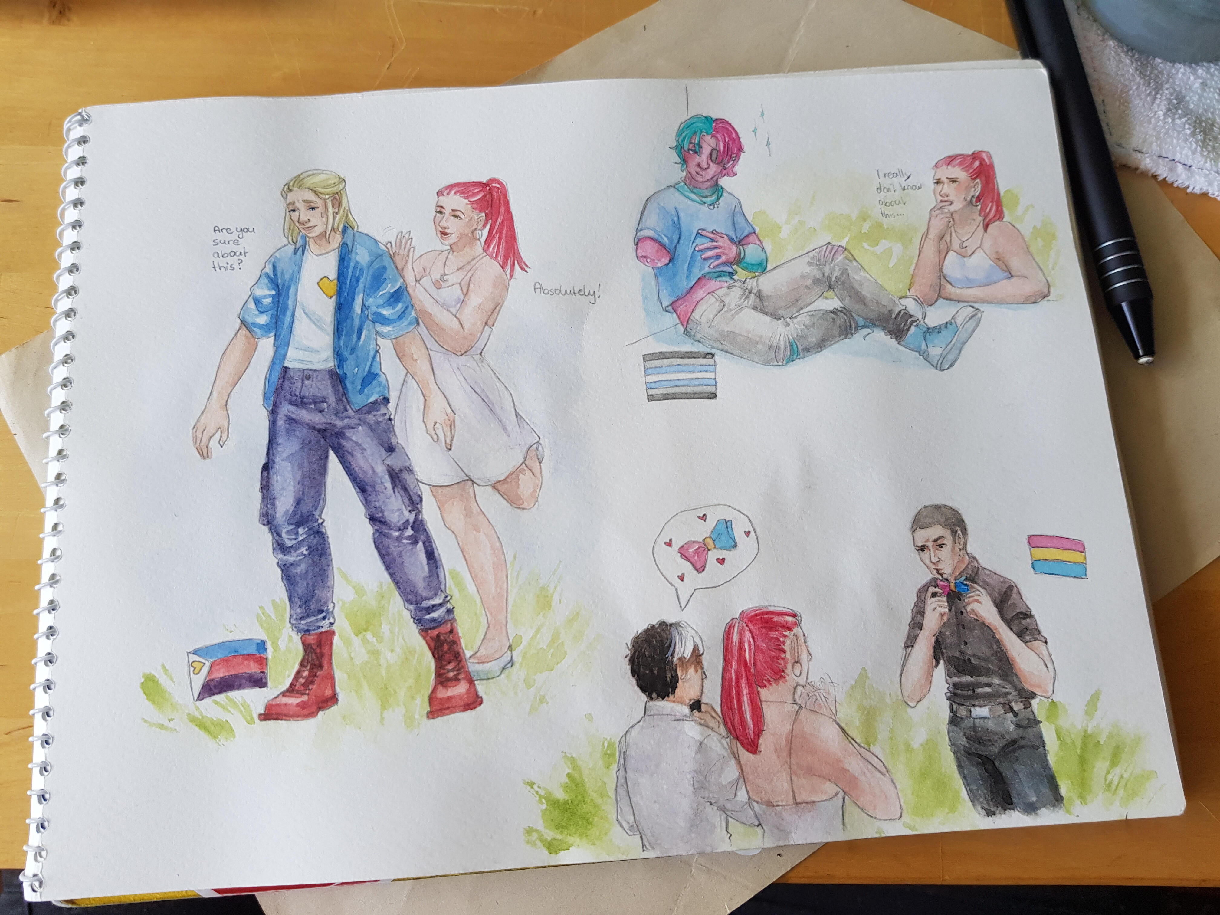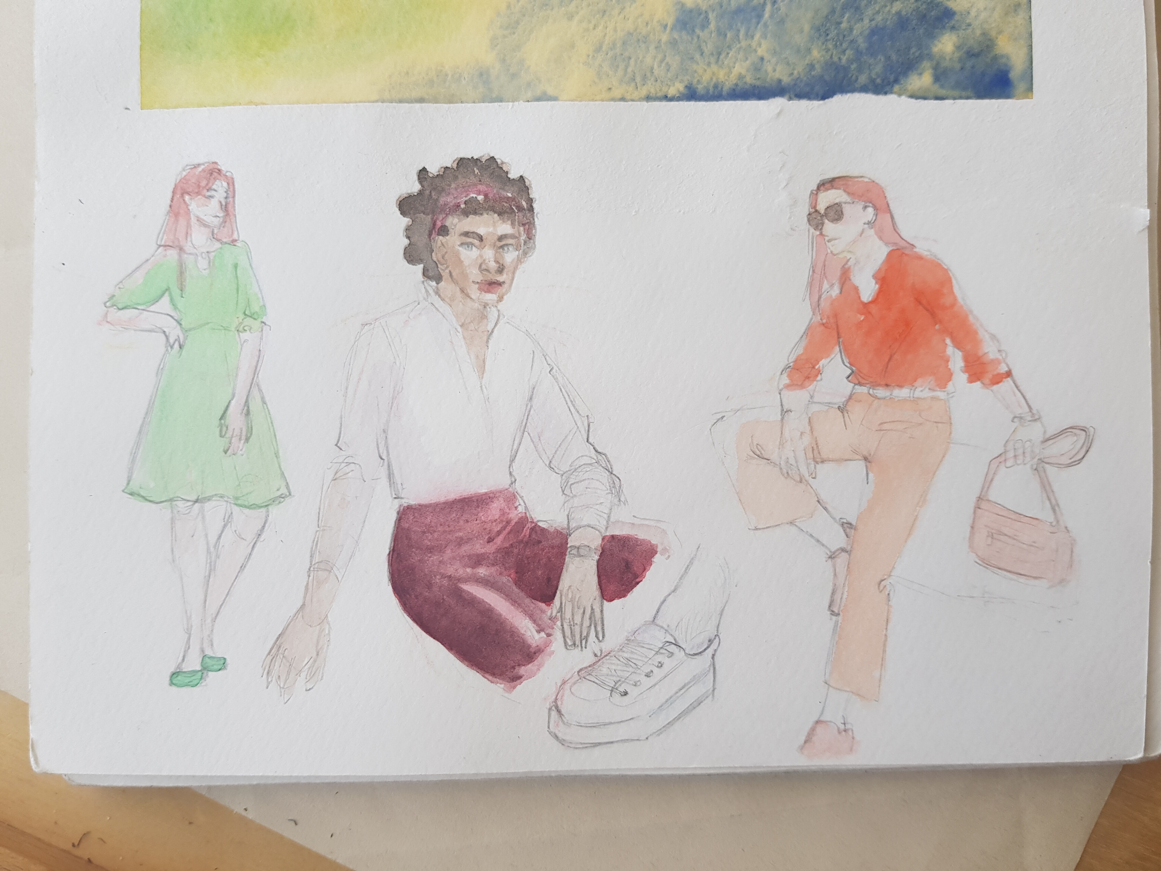 Oder wie soll ich es besser nennen? Irgendein Stück Papier, Sticker, Washi, oder auch Plastikteile, Folienstücke, flaches Metall, ein Knopf… was inspiriert und damit zusammen irgendwas im Skizzenbuch formt. Das wird dann auch eingeklebt.