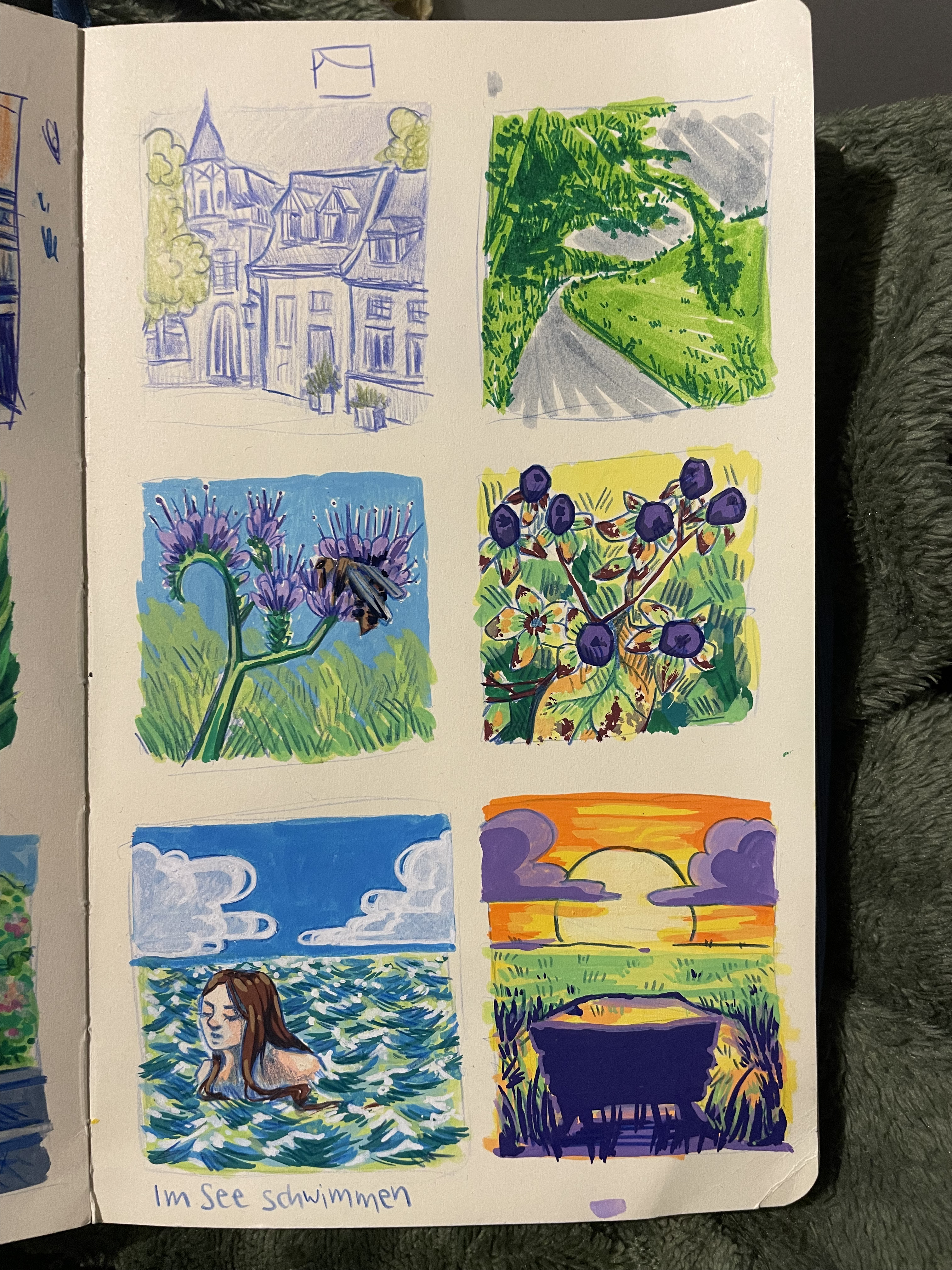 Was auch immer es ist, halte in deinem Skizzenbuch fest, was dir am Sommer am meisten gefällt. Auch wenn du kein Sommermensch bist, ist das vielleicht die Möglichkeit etwas zu finden, was den Sommer ein bisschen besser macht:)