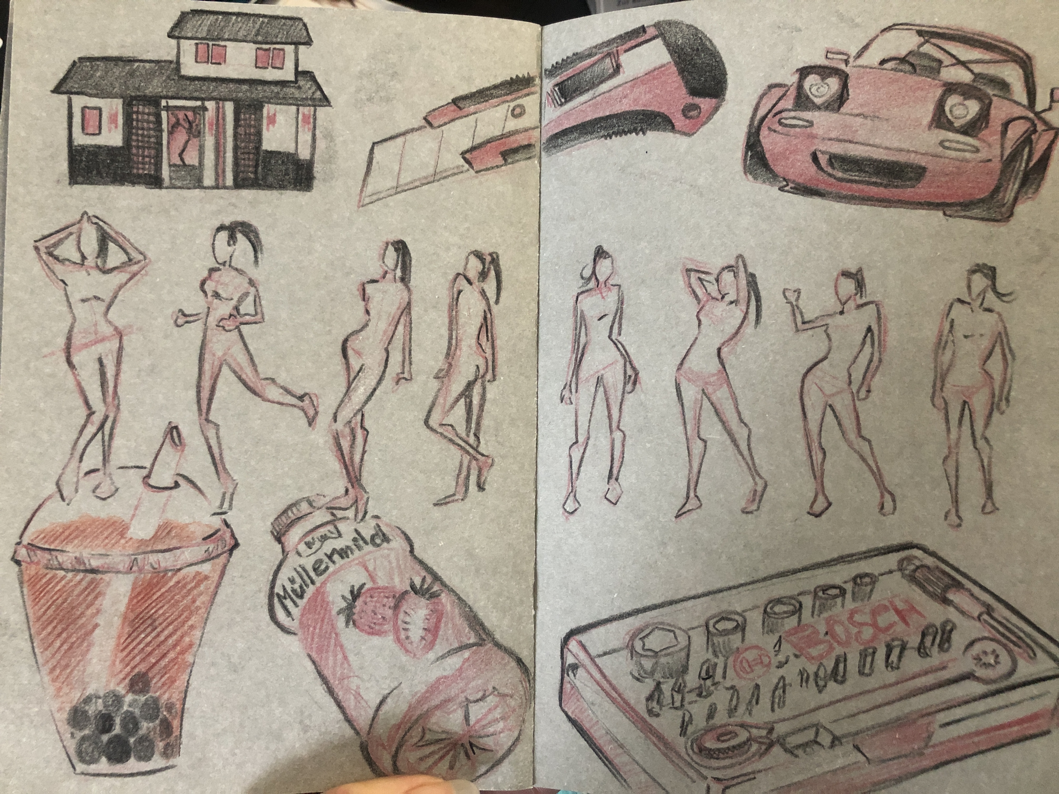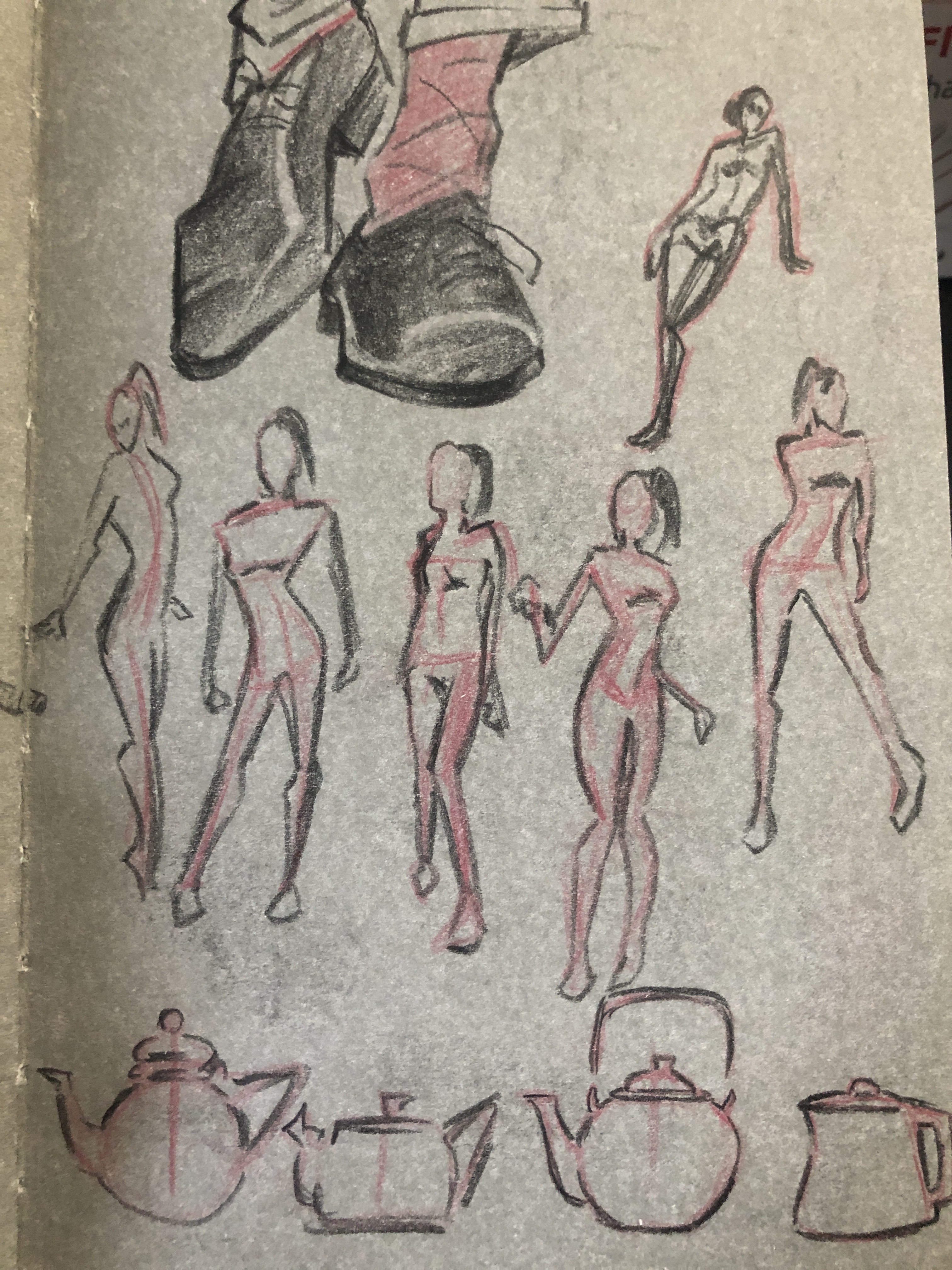 Am Ende finde ich belohnt einen das Ergebnis aber mit einer dynamischen Seite. Das stört mich beim Aktzeichnen immer so, ich will sofort alles in den Müll werfen weil undynamisch, plump etc. Aber diese sehr abstrakten Figürchen mag ich gerne im Buch stehen lassen. Und dann stolz hinschauen “schau mal wie dynamisch! und das hab ich gezeichnet! ich kann das eigentlich nicht!”