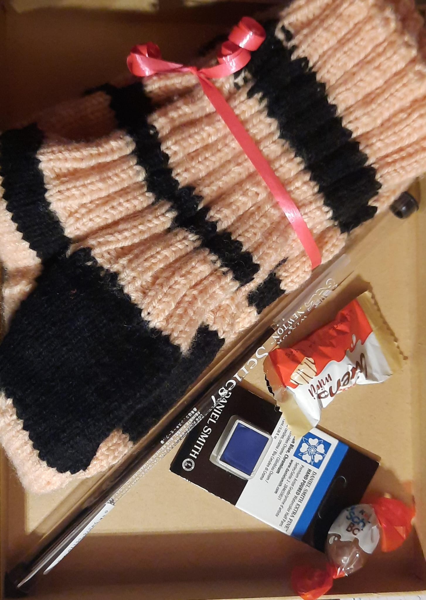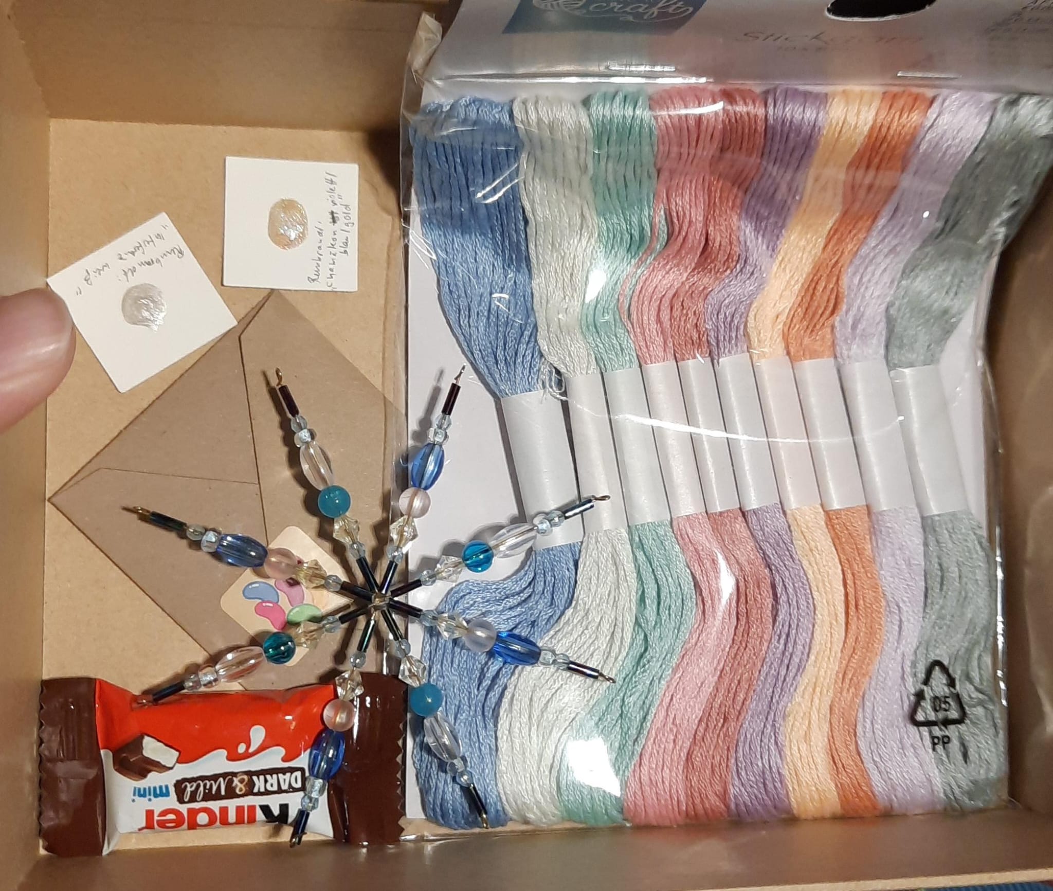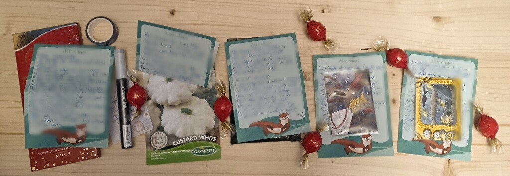 Und dann habe ich zum einen wieder einen prall gefüllten Briefumschlag bekommen, diesmal aus dem Papierfundus meiner Wichtelmama und dabei war auch das Paul Rubens Glitzerpapier! Das wollte ich ja soooo lange schon Mal ausprobieren, ich freu mich so 🥹 Generell bin ich super gespannt auf die verschiedenen Papiere und möchte am liebsten direkt loslegen. Und dann habe ich auch noch zweie abgefüllte Schmincke Farbnäpfchen bekommen, mit denen meine Wichtelmama wohl sehr gerne arbeitet. Auch da bin ich super gespannt!