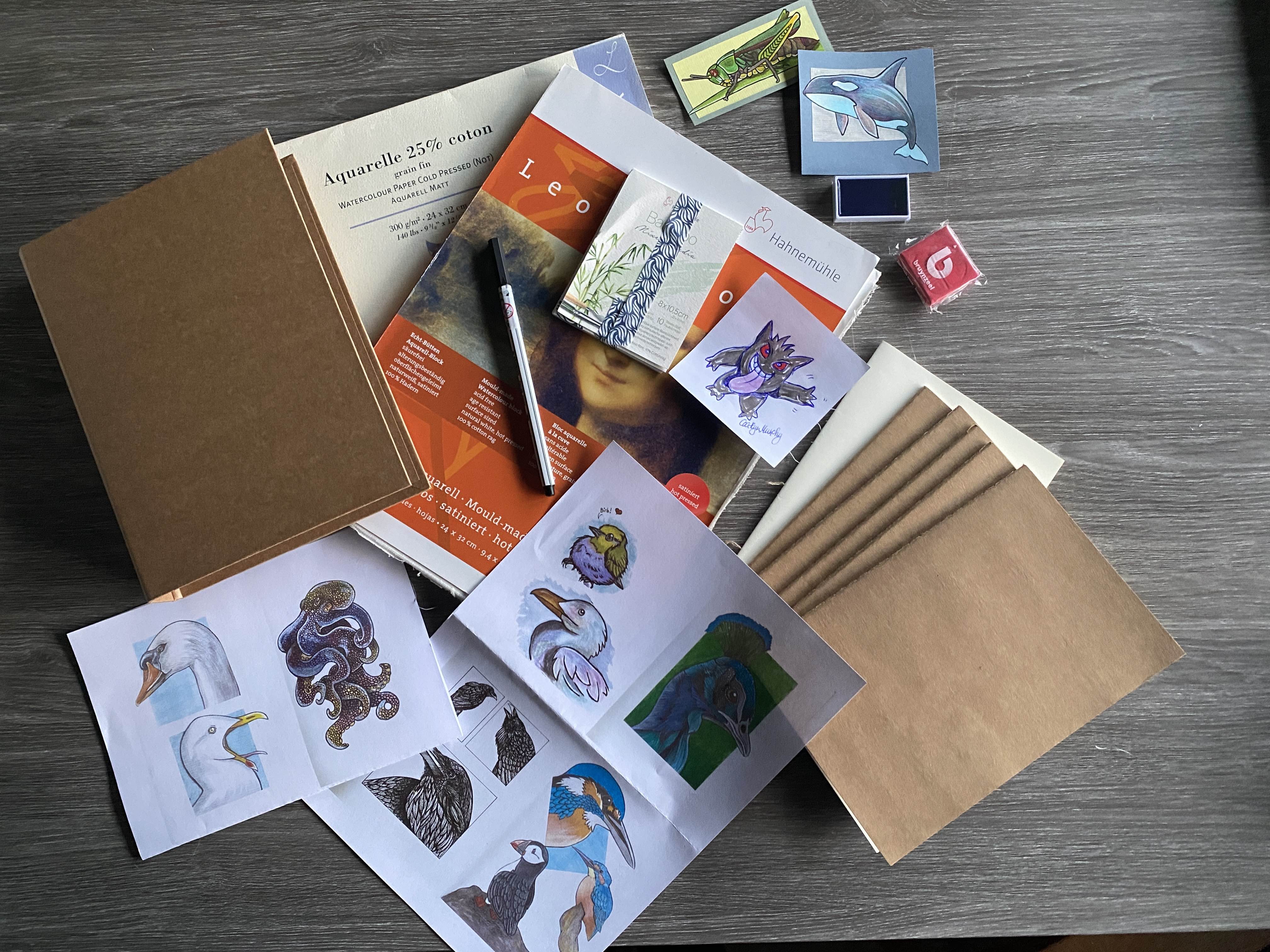 Ganz viel tolles Papier und dann noch kleine Skizzenbücher für die Kids, die werden sich darauf stürzen :O Genauso wie auf die Zeichnungen von den Vögeln. Endlich was Neues für sie zum Üben.