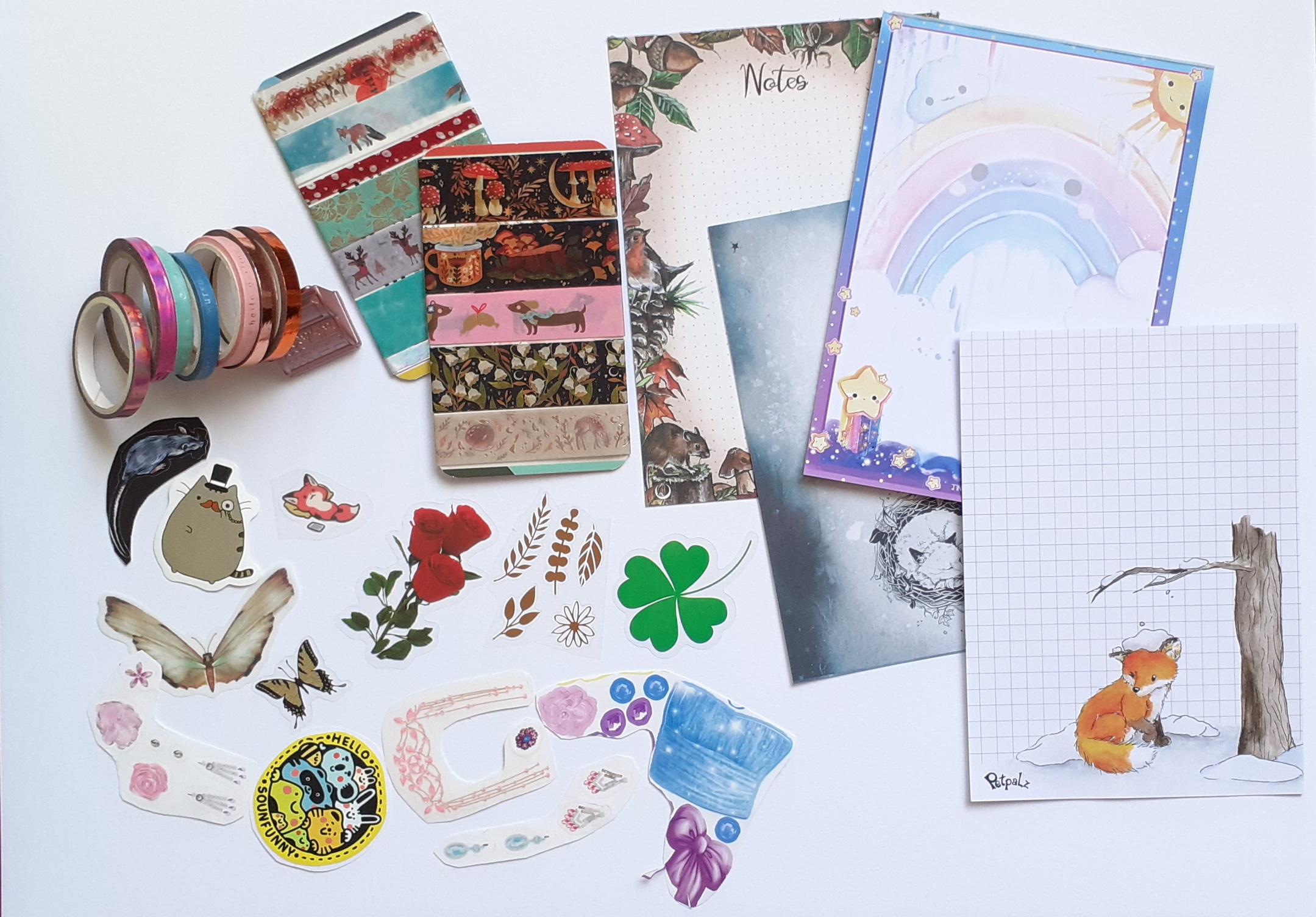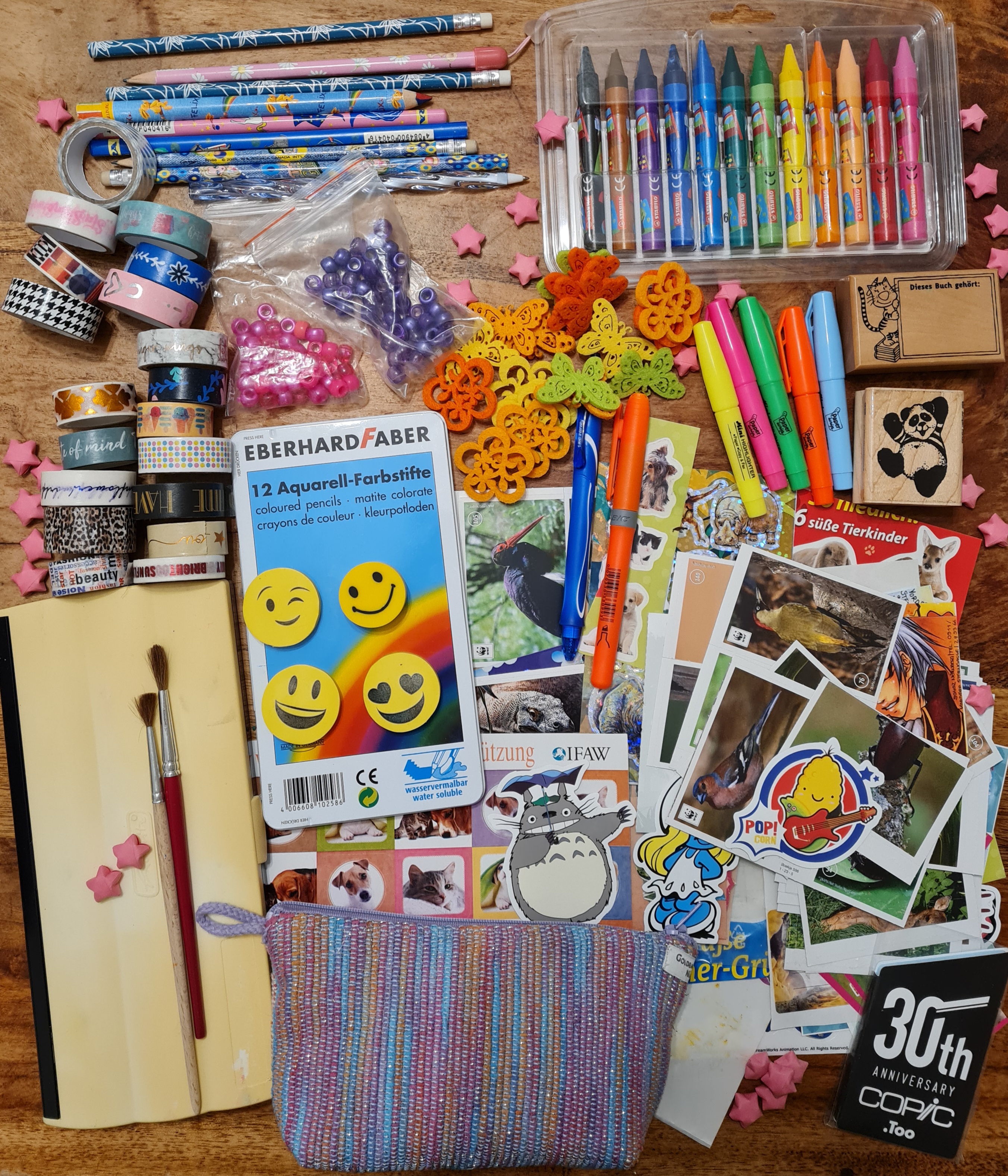 Diese Woche kam ein Paket an von @Sternenhexe und @CuteAnanas mit vielen tollen Sachen, wie Washi-Tapes, Gelstifte, Sticker, niedliche Haftnotizen, Briefpapier, Miniatursachen und ein Buch. (Ein Foto konnte ich leider noch nicht machen, bin krank/ noch angeschlagen.