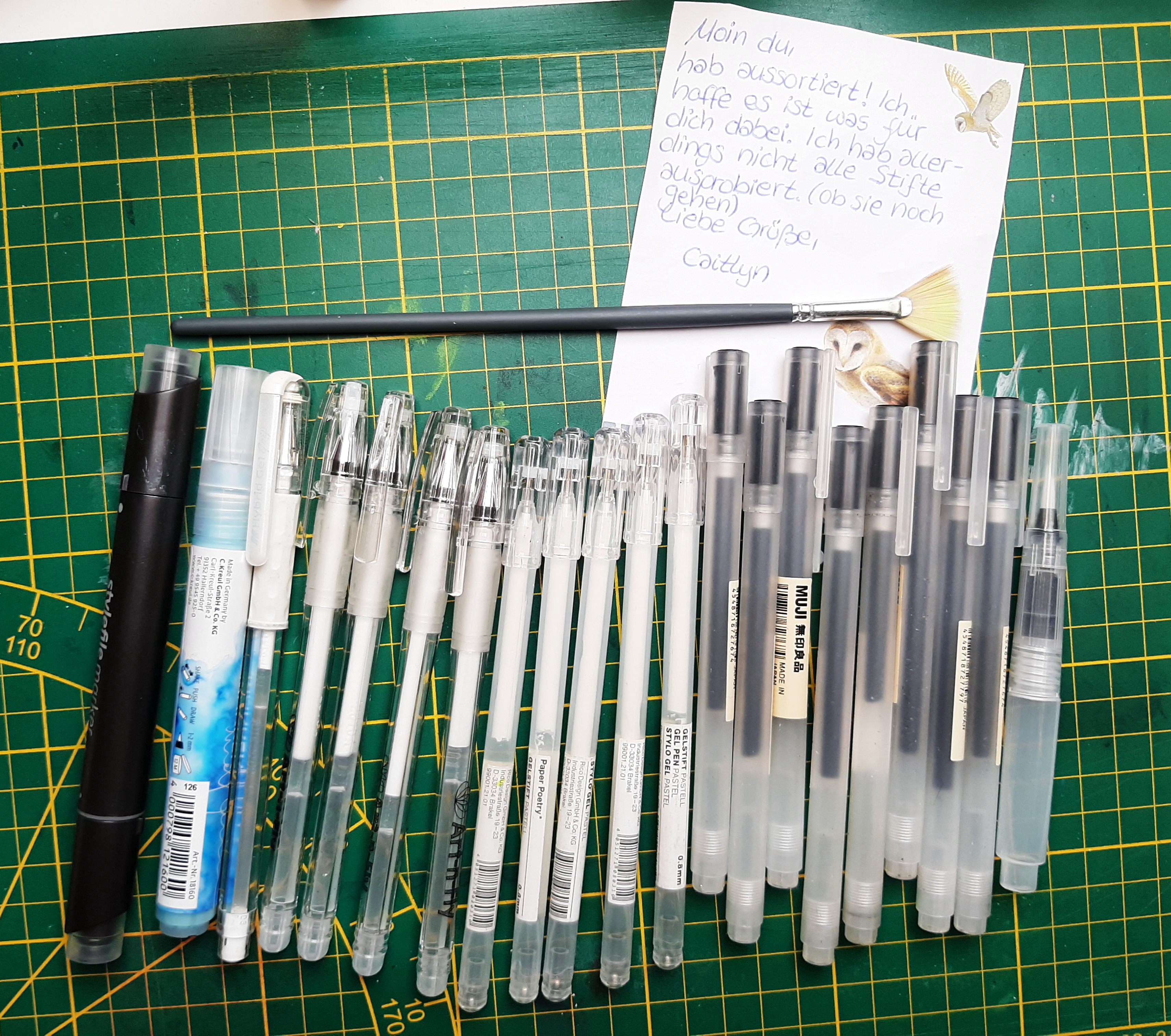 Darin waren super viele Gel Stifte, damit habe ich erstmal ausgesorgt. :3