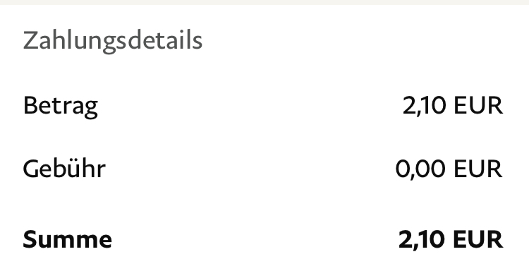 @Naira : oh! Ich hatte eigentlich sogar 2,10€ überwiesen (ich hab gerade nochmal nachgeschaut, da steht eigentlich „keine Gebühren“) berechnet Paypal die, wenn man da was falsch anklickt? Und ich schaue, dass ich den Rest noch überweise!