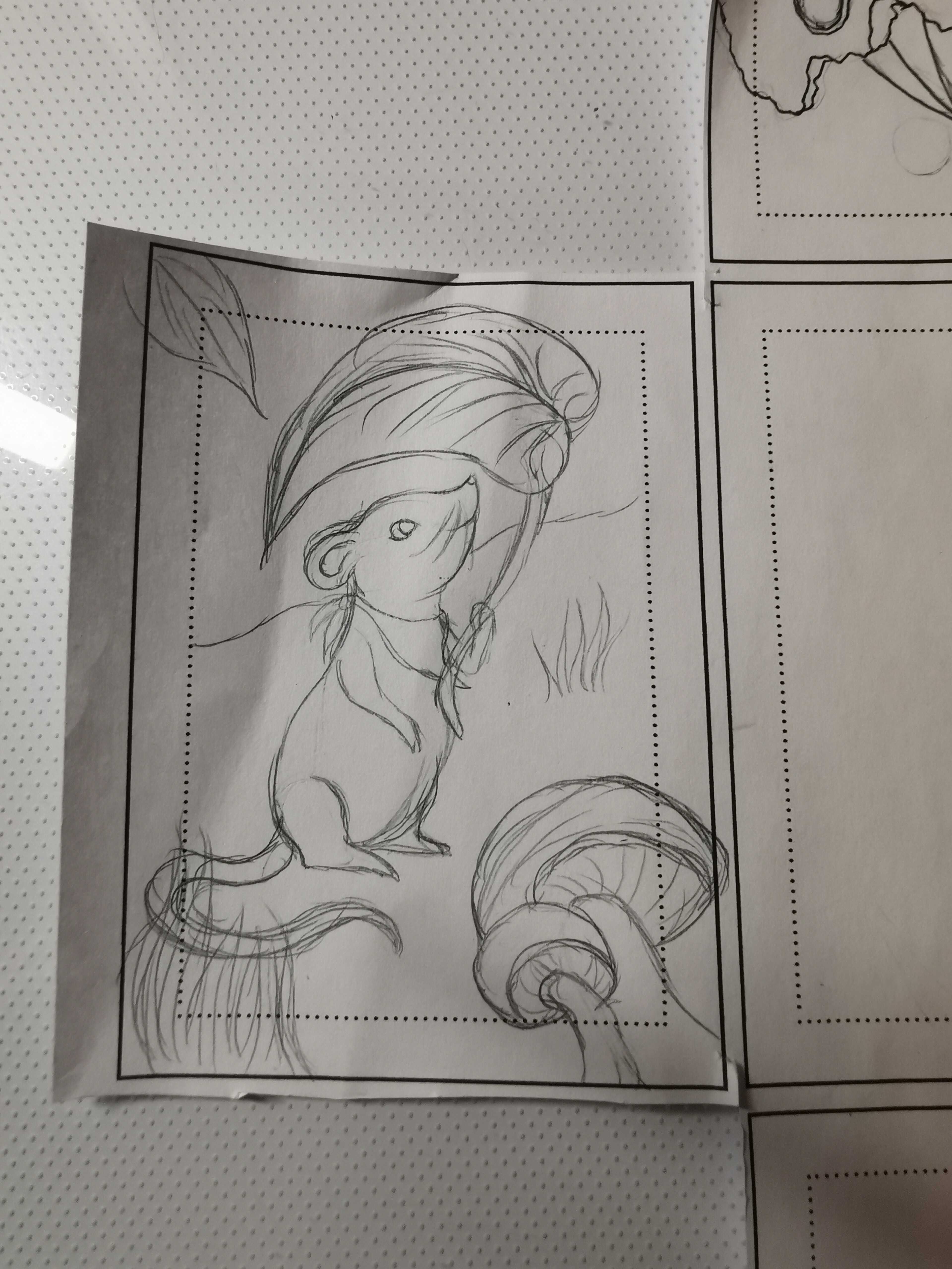 Die maus, das blatt und die Pilze würde ich aus bastelelementen machen.