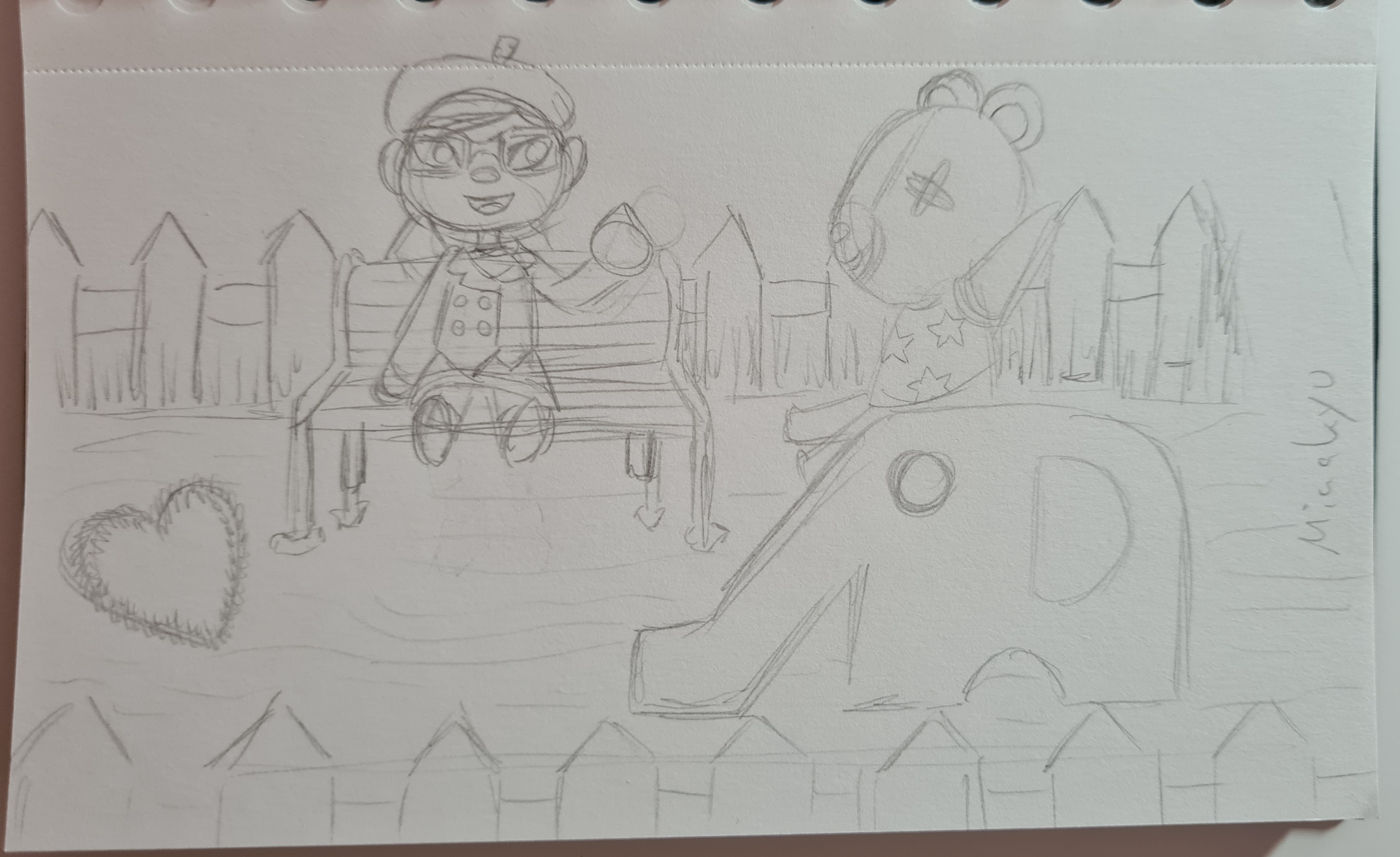 @anon8037352 Bei deinem Spielplatz kam mir sofort die Idee Berry auf die Rutsche zu setzen, ich wollte dich dann noch dazu setzen, wie du ihm beim Spielen zuguckst und ihm zuwinkst, dafür hab ich die Stelle, an der die Bank steht, etwas verändert (genauso wie das Sandherz), ich hoffe, das ist okay.