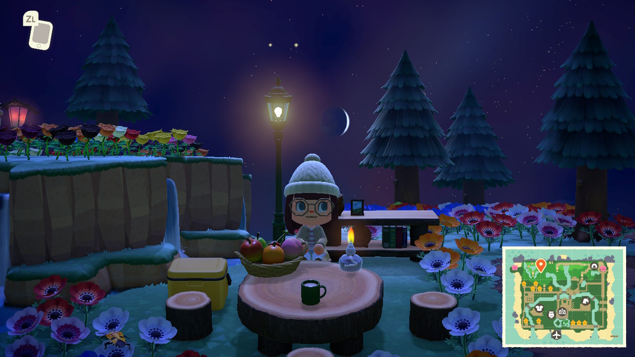 - ein Charakter im Nadelwald mit Pilzen/Pilzmöbeln, vor allem die leuchtenden Pilzlampen liebe ich! Unglücklicherweise habe ich im Herbst nicht viel gespielt, und kann einen entsprechenden Ort auf meiner Insel (noch) nicht vorweisen.