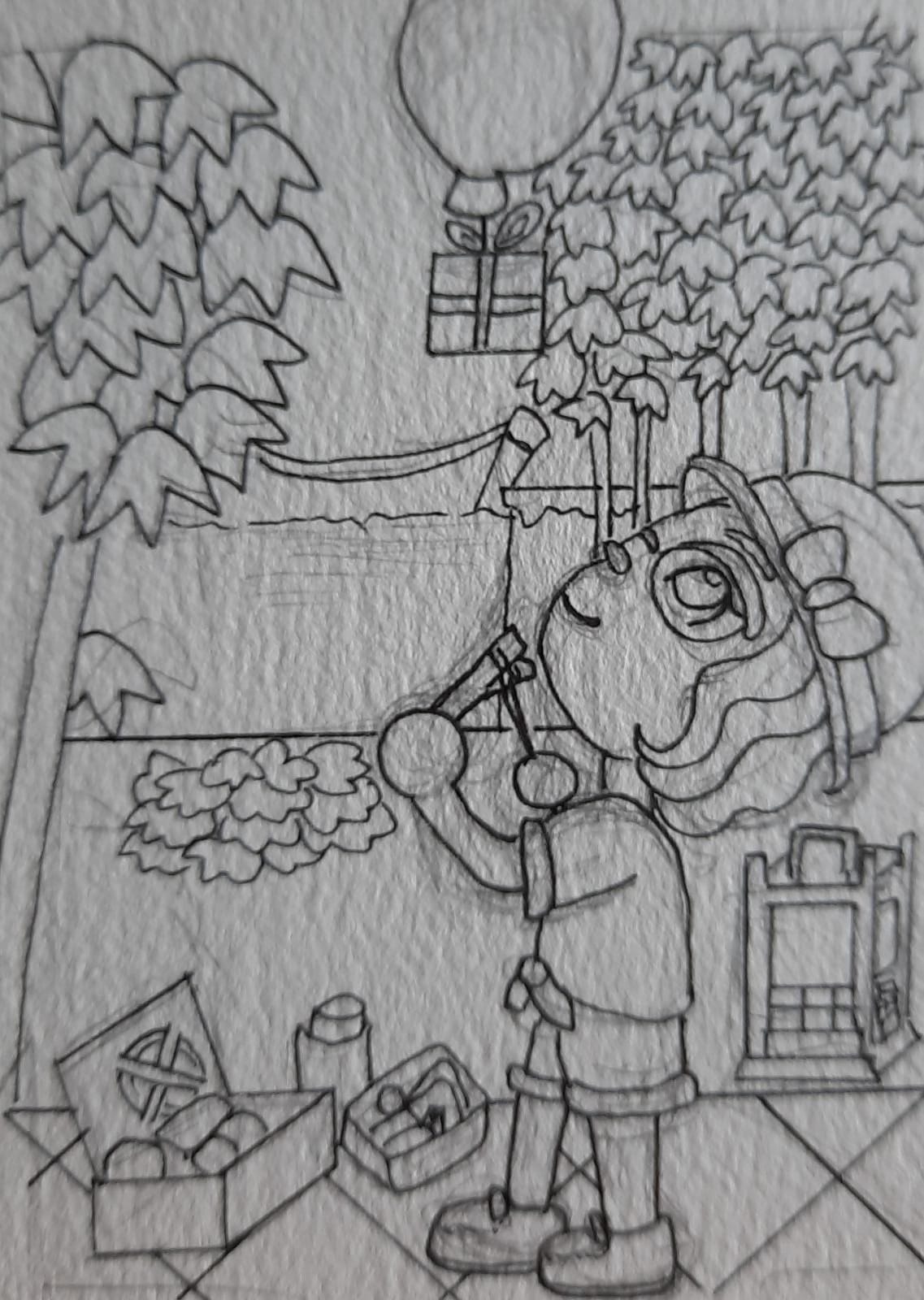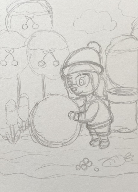 Aber ich hoffe, Du erkennst die Szene, @xX_sarah_Xx - ich habe Dich rechts vor Deinem Haus beim Schneemil-bauen skizziert. Dazu kommen natürlich noch ganz viele Schneeflocken (vorausgesetzt natürlich, Dir gefällt die Skizze)
