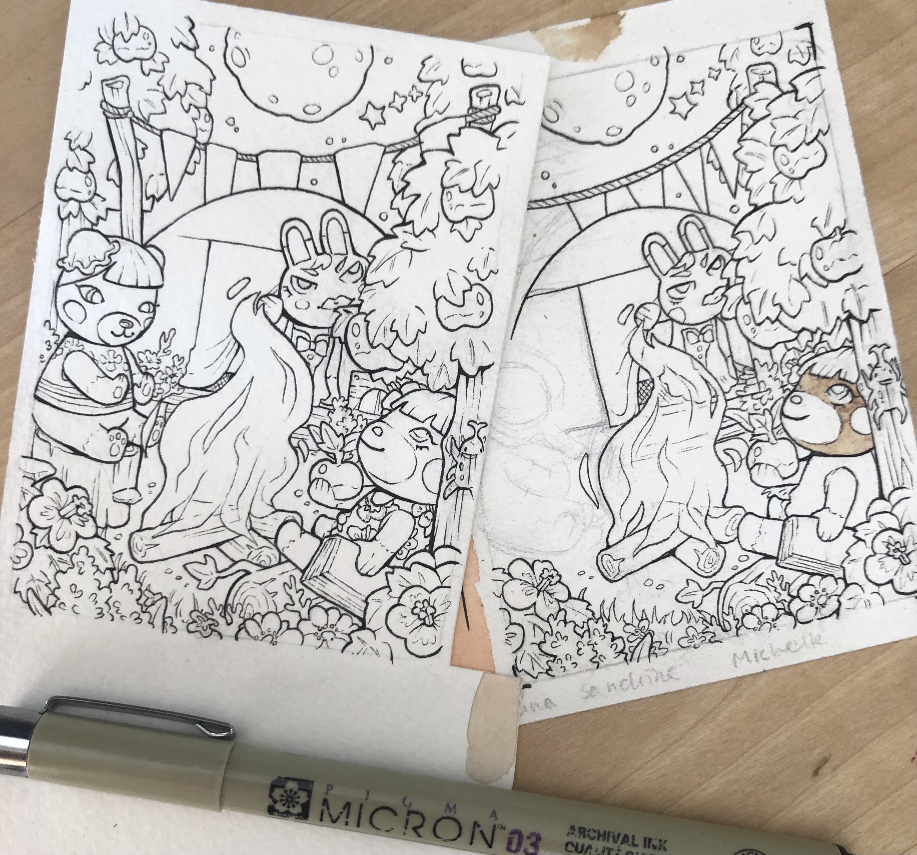 @Calla Mir gefallen beide Skizzen unheimlich gut, dass ist jetzt schwer für mich zu wählen!!! Wobei mich dann doch die Skizze am Lagerfeuer ein Stück mehr reizt. Ich würde mich allerdings freuen, wenn du Stella noch durch Michelle austauschen könntest :D dann hättest du auch drei Bewohner meiner Stadt auf eine Karte. Ich bin ja schon so gespannt.