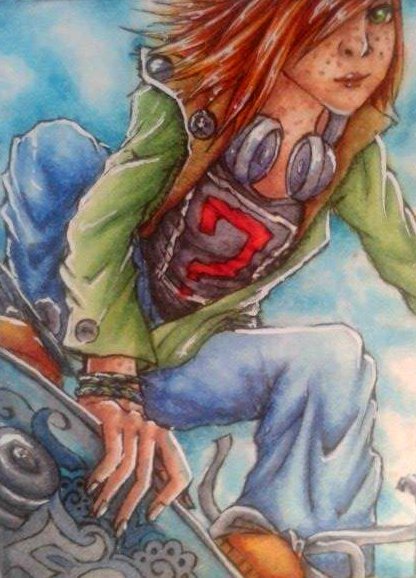 @Kat_van_Laufeyson: ich hab endlich eine Skizze fertig!! Ich hoffe, sie gefällt dir… Das Foto hat die Karte ein wenig abgeschnitten, unten sieht man noch ein Knie mehr… Ich weiß ehrlich gesagt nicht, was ich in den HG packen soll, der Big Ben ist mir zu kompliziert xD sie soll übrigens auf einem Brückengeländer stehen, sorry für die komische Perspektive, da muss ich noch üben. Kaitlyn …die Kopfform ist eigentlich nicht so komisch, ein wenig länger oben, das Foto hats ein wenig verzerrt… ‘w’) ich hoffe dir gefällts! Sag wenn ich was ändern soll oder dir die Karte nicht gefällt!