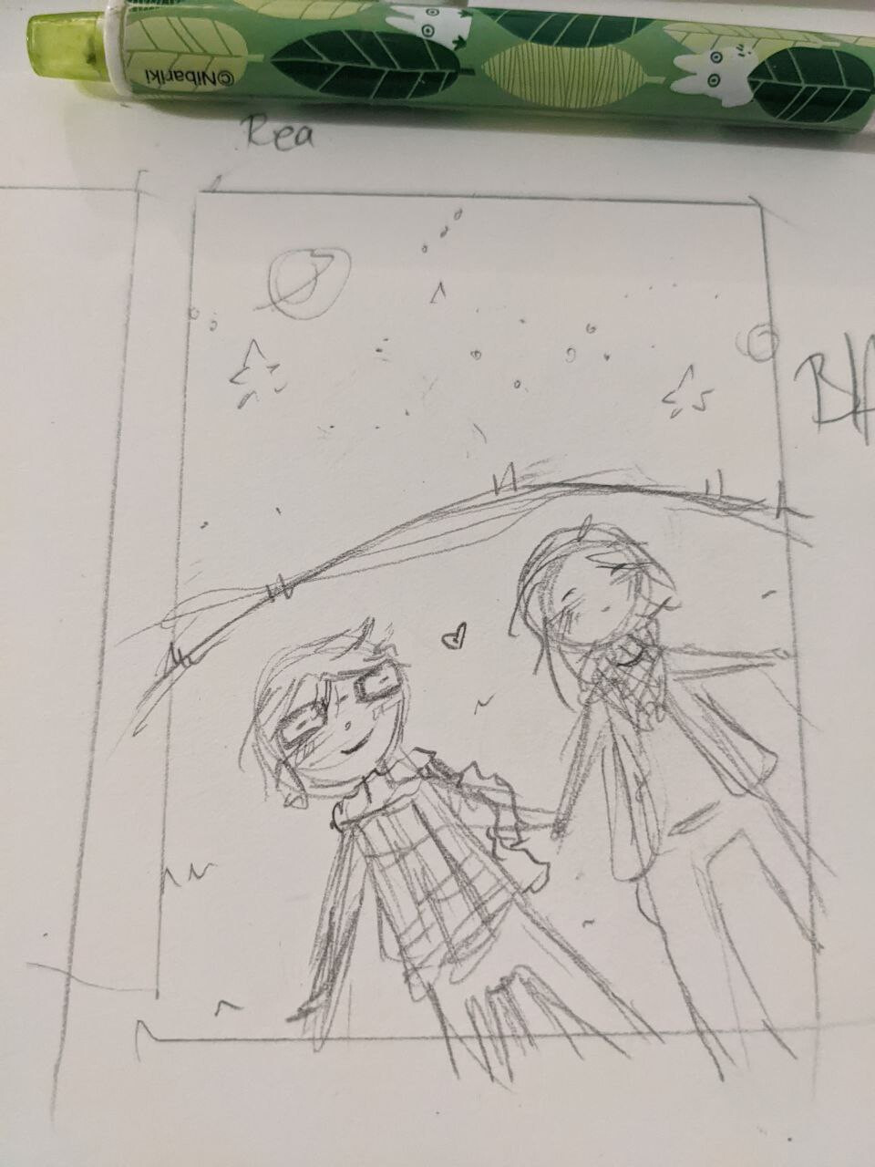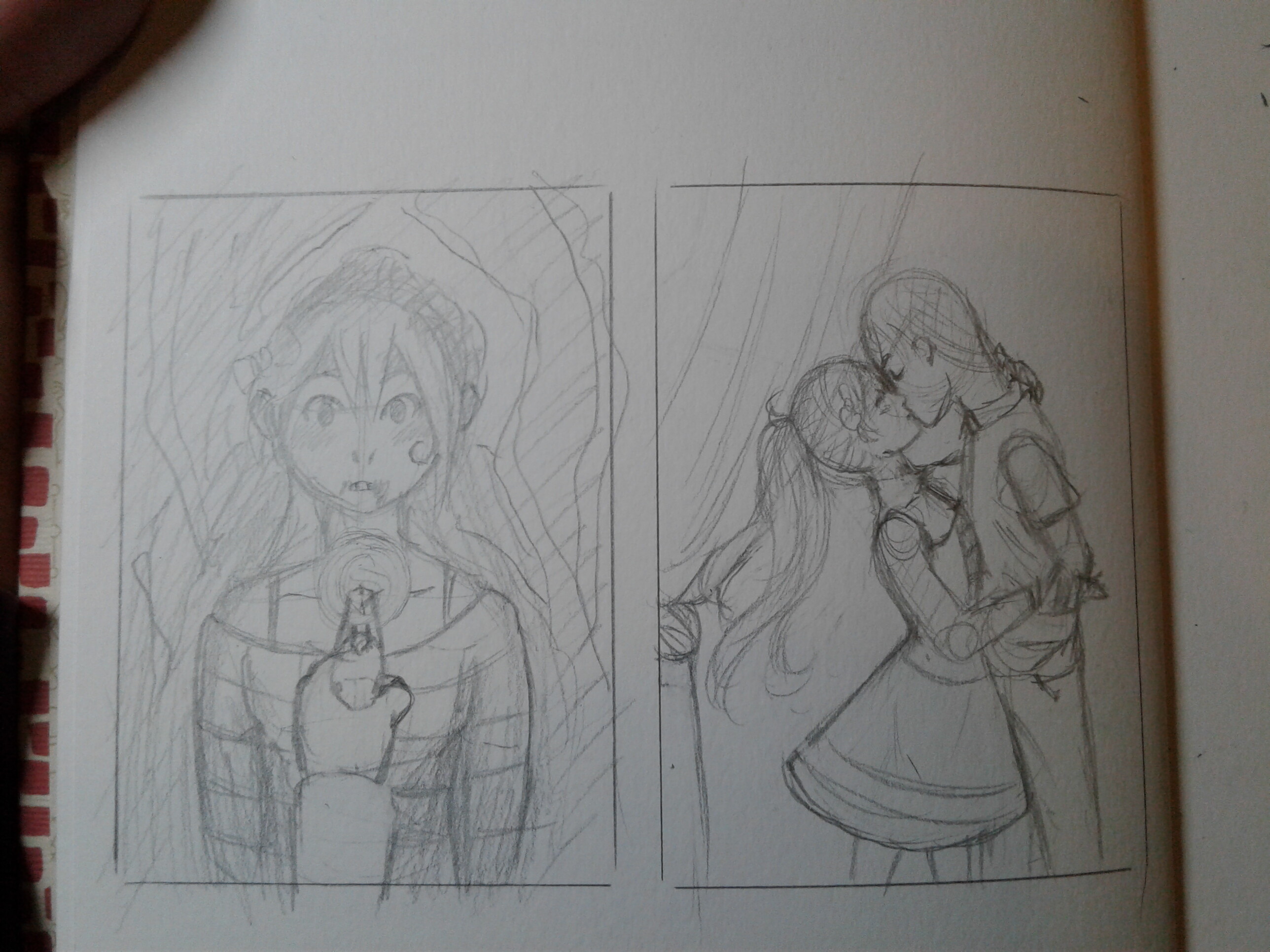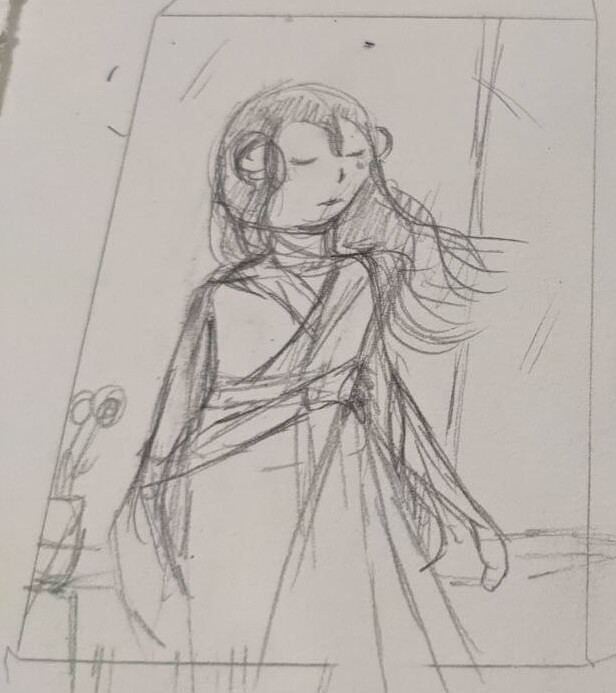 Das sind die besten Skizzen die ich geschafft hab, bei denen ich das Gefühl habe, das ich das Gefühl was ich gefühlt hab, beim lesen, getroffen habe. Ich habe Angst das sie nicht detailliert genug sind. Aber ich muss ja auch einfach endlich mal fertig werden. Es ist schon so wahnsinnig knapp und ich brauch ja auch die Zeit um zu überarbeiten was euch nicht gefällt. (Bitte nehmt mein jammern nicht als Anlass NICHT zu sagen wenn euch etwas nicht gefällt, es fällt mir durchaus leichter zu korrigieren als zu kreieren :>, auch wenn das komplette Motiv euch nicht gefällt und ich was neues ausdenken muss! Ich schaff das und es ist meine eigene Schuld! Ich will das ihr eine Karte bekommt mit der ihr zufrieden seid.)