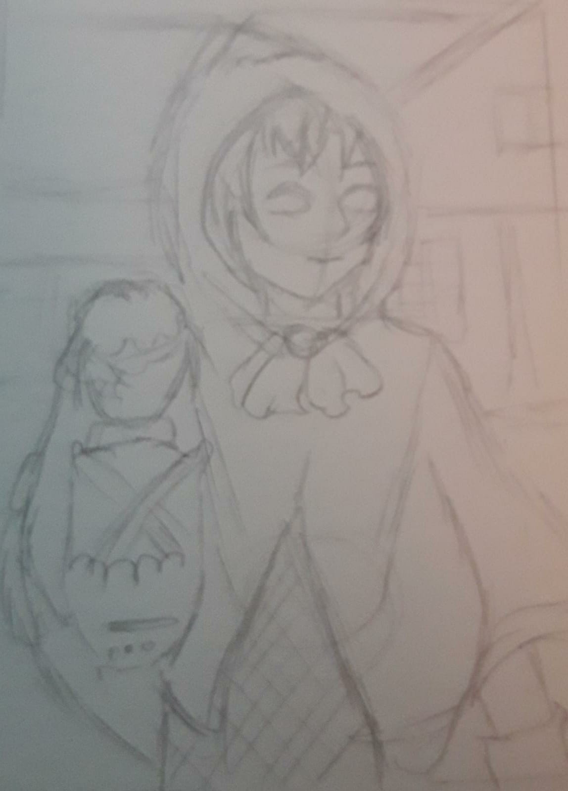 Hier wäre dann noch die letzte Skizze für @Chocoberry. Bin immer noch recht planlos, daher habe ich mich an das Cover vom zweitem Kapitel orientiert.