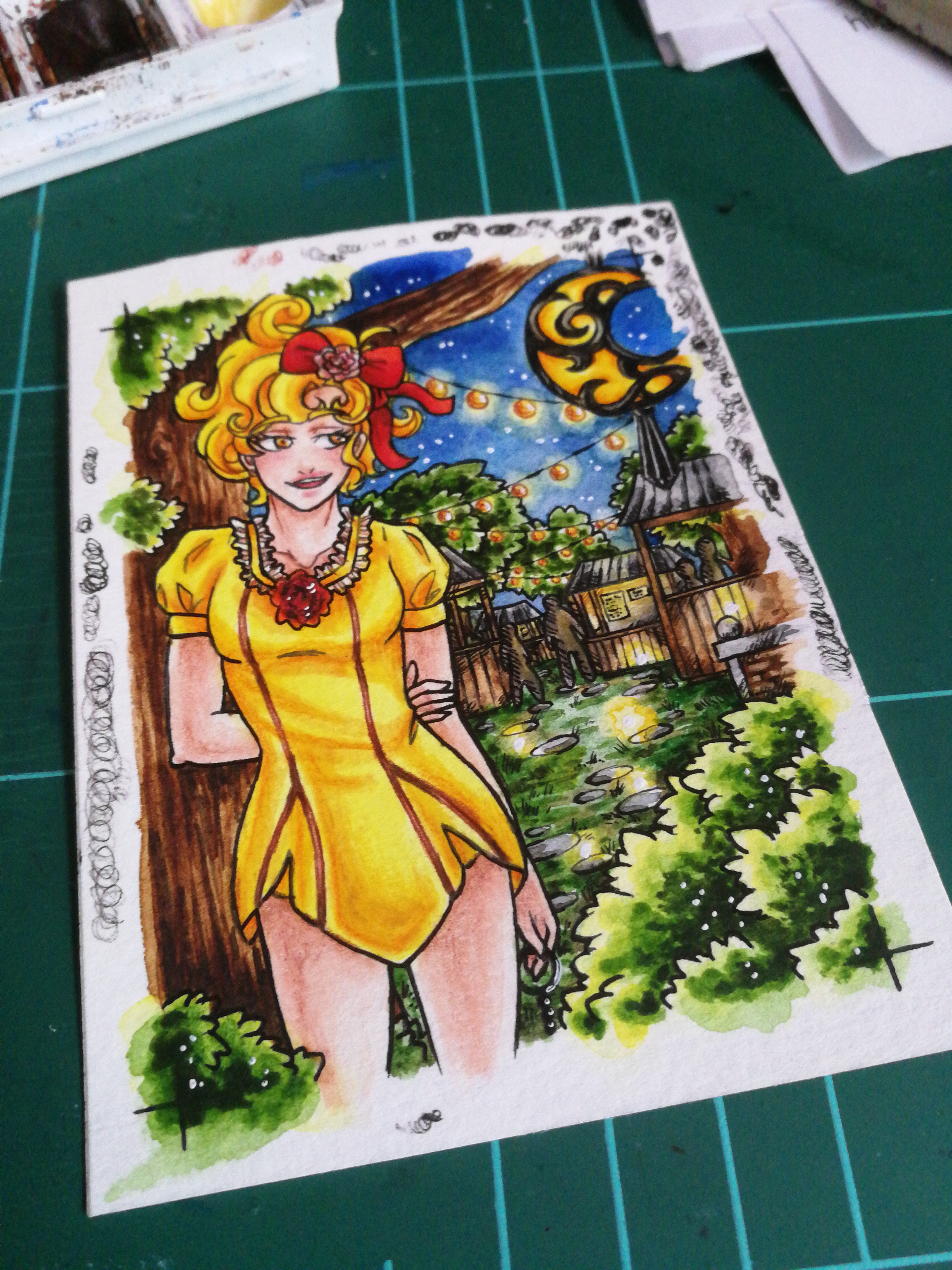 Die Karte von Lucretias wo die beiden auf einem Fest zu sein scheinen, hat mich inspiriert. Fynn und Niko sind auf einem Sommerfest und irgendwie haben sie Fynn dazu überredet, sich von den Kids bemalen zu lassen… ob ihm das ergebnis gefallen wird ist wohl zu bezweifeln…