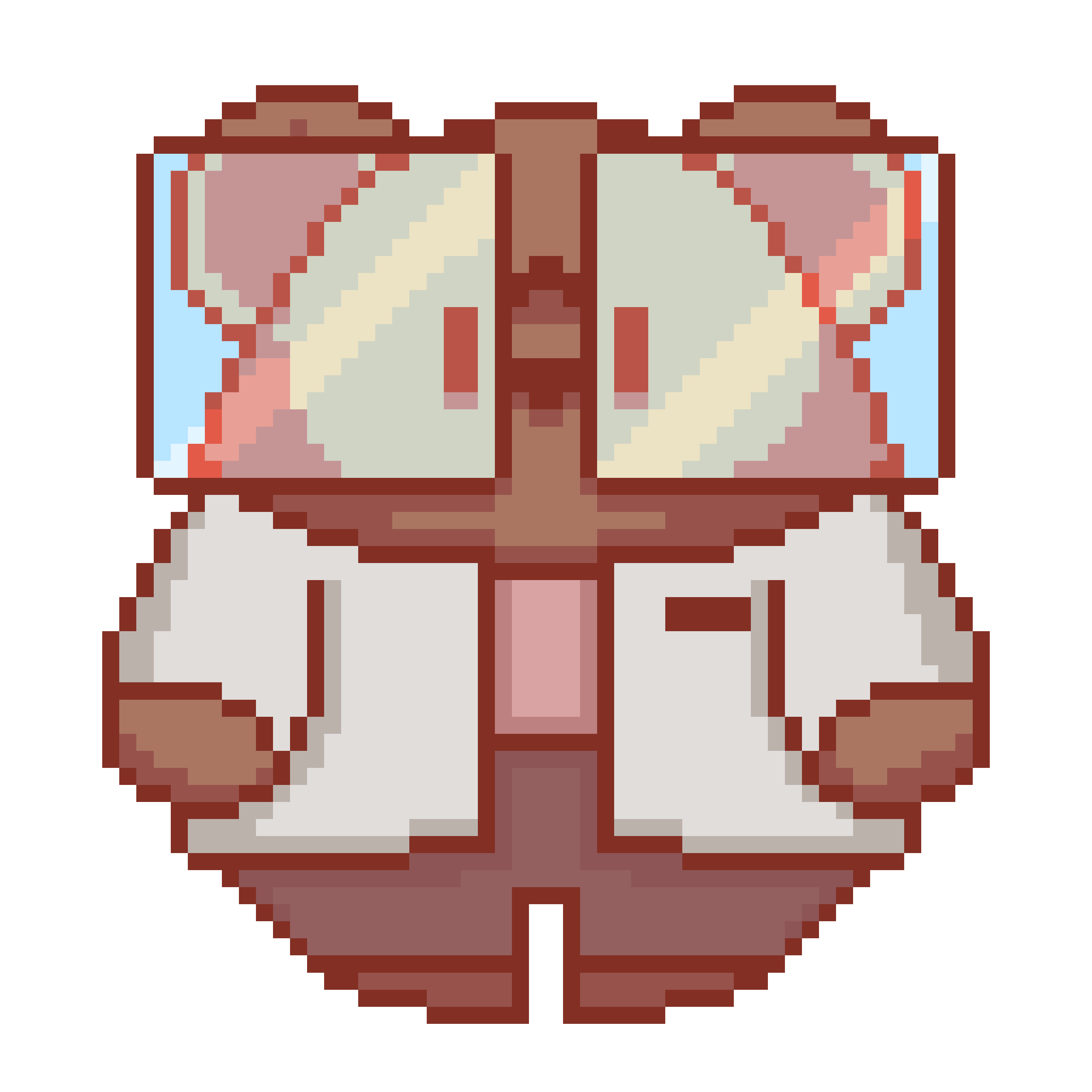 Dieser Charakter ist aus meinem zweiten Versuch ein Spiel zu machen entstanden. Dieses Mal kann man es sogar online spielen(TimeCastle by elizabetezv.), da es in Unity gemacht wurde. Zum Plot: Der Bär ist ein Wissenschaftler, der eine Zeitmaschine gebaut hat. Er hat auch, vor kurzen ein Schloss gekauft in welchem es spuckt und durch das Hin und Her Springen in der Zeit muss man den Geistern, die im Schloss gefangen sind, helfen, wieder Ruhe zu finden. Und das ganze Spiel besteht aus verschiedenen Puzzles und Rätseln.