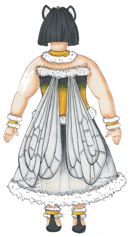 - Fell/Federn: Weisses Fell und weisse Federn. . Die Rute ist die eines normalen Greifen, jedoch am Ende statt einer Löwen-Quaste lange silberne/metallisch wirkende und kürzere blaue leuchtende Federn. Bei den Flügeln kommen ebenfalls die langen silbernen und kürzeren blauen Federn vor.