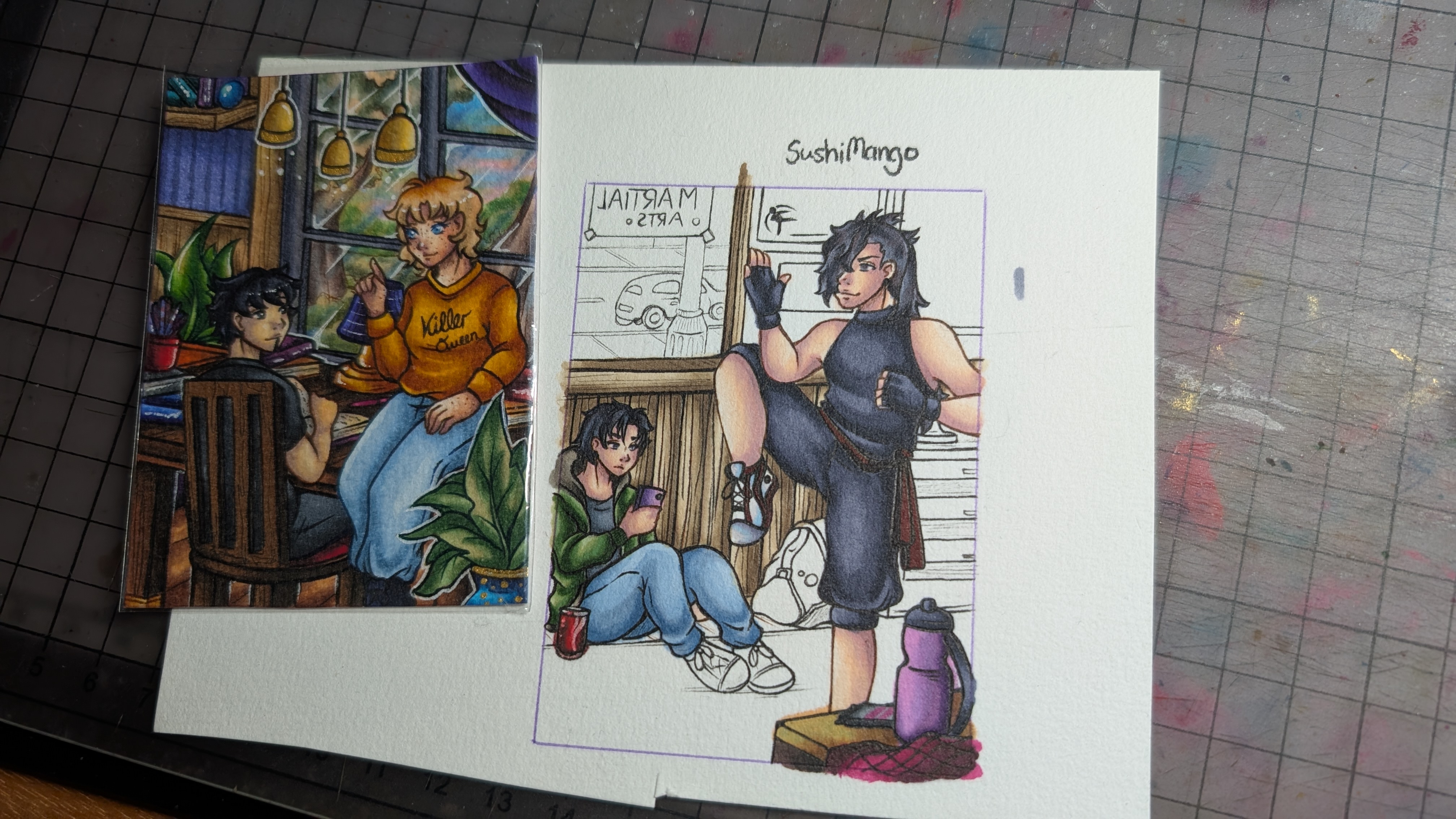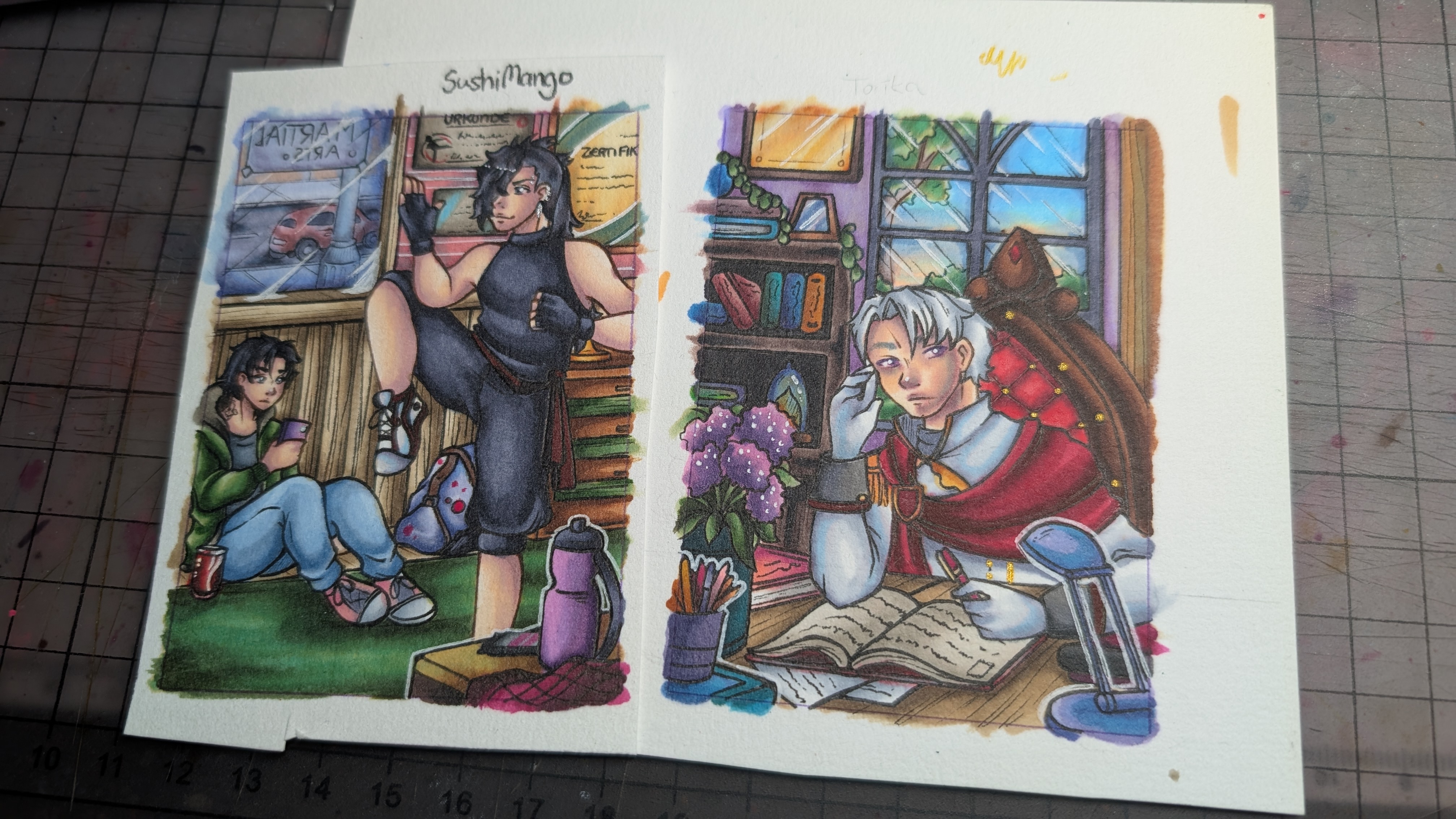 Leider bin ich nicht fertig geworden, wird daher morgen ne Punktlandung morgen. Die Karte für @MiseryInk ist jedoch fertig und die für @SushiMango ist als WIP dabei. Karte 3 ist auch gelined. Hab morgen den ganzen Tag für mich, da kann ich mich dran setzen.