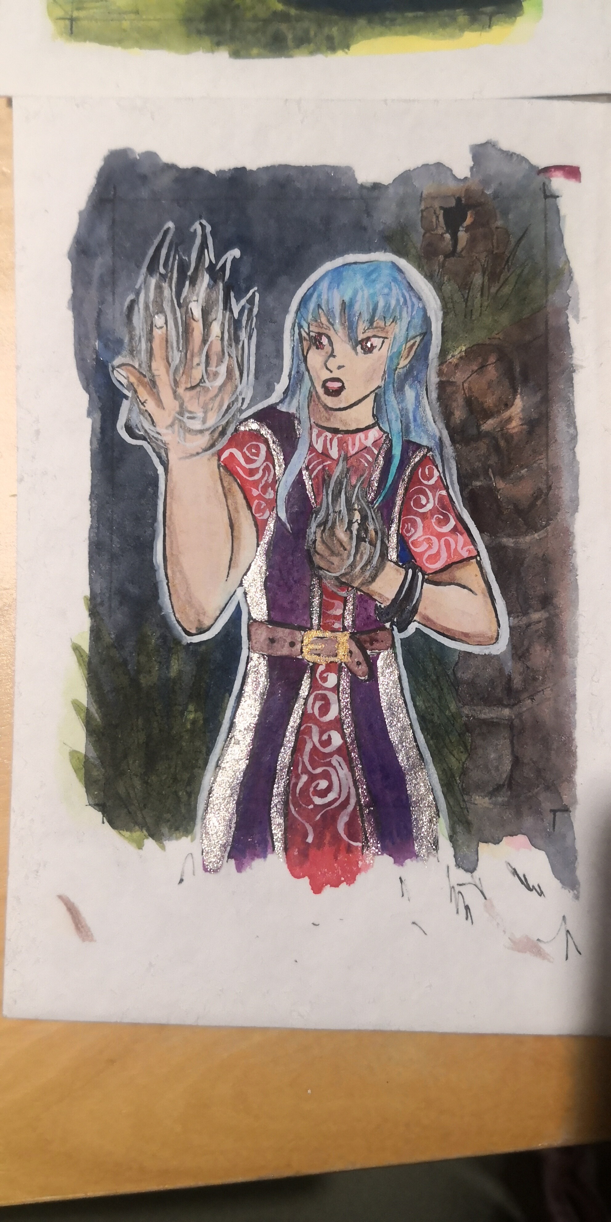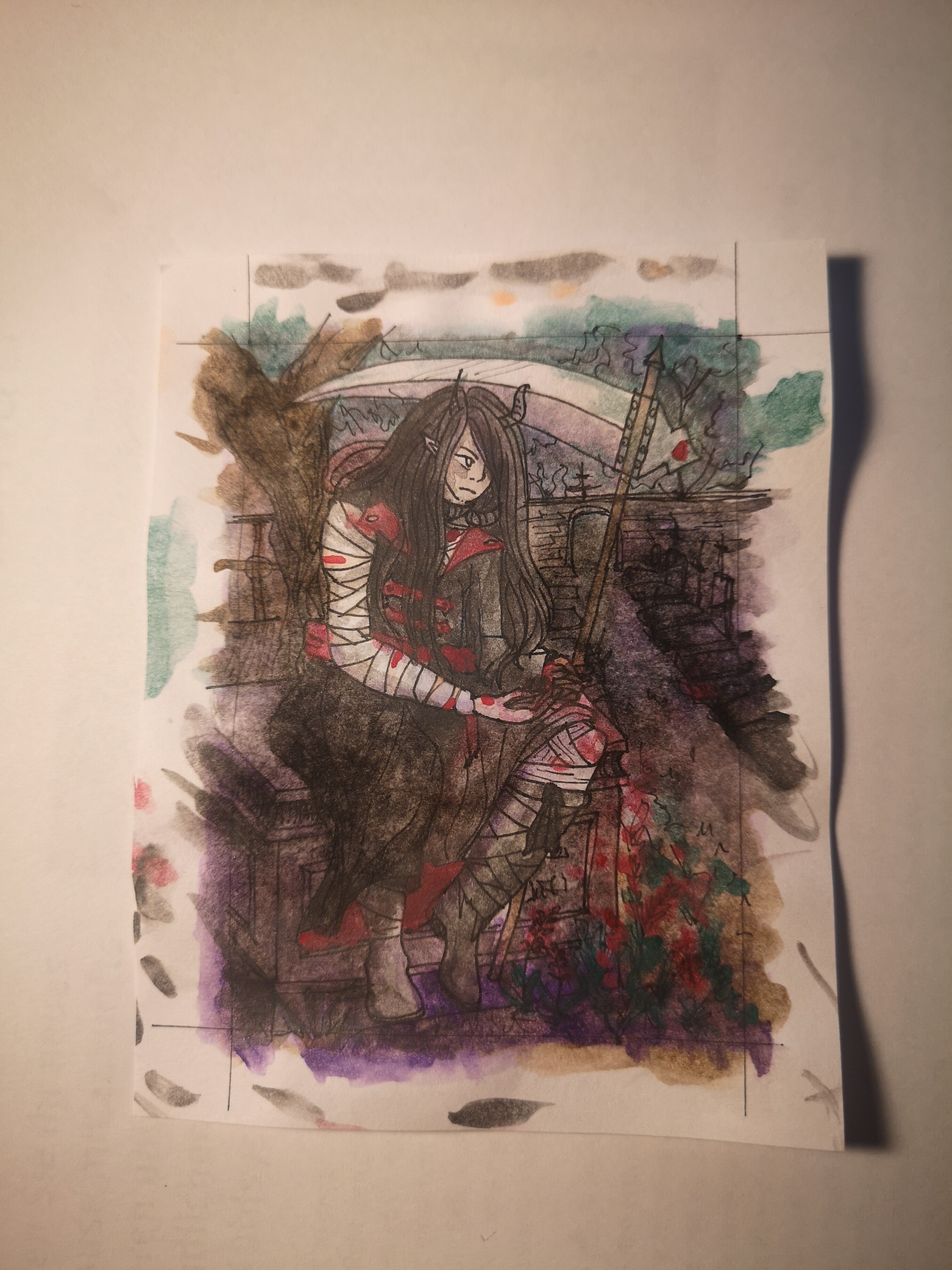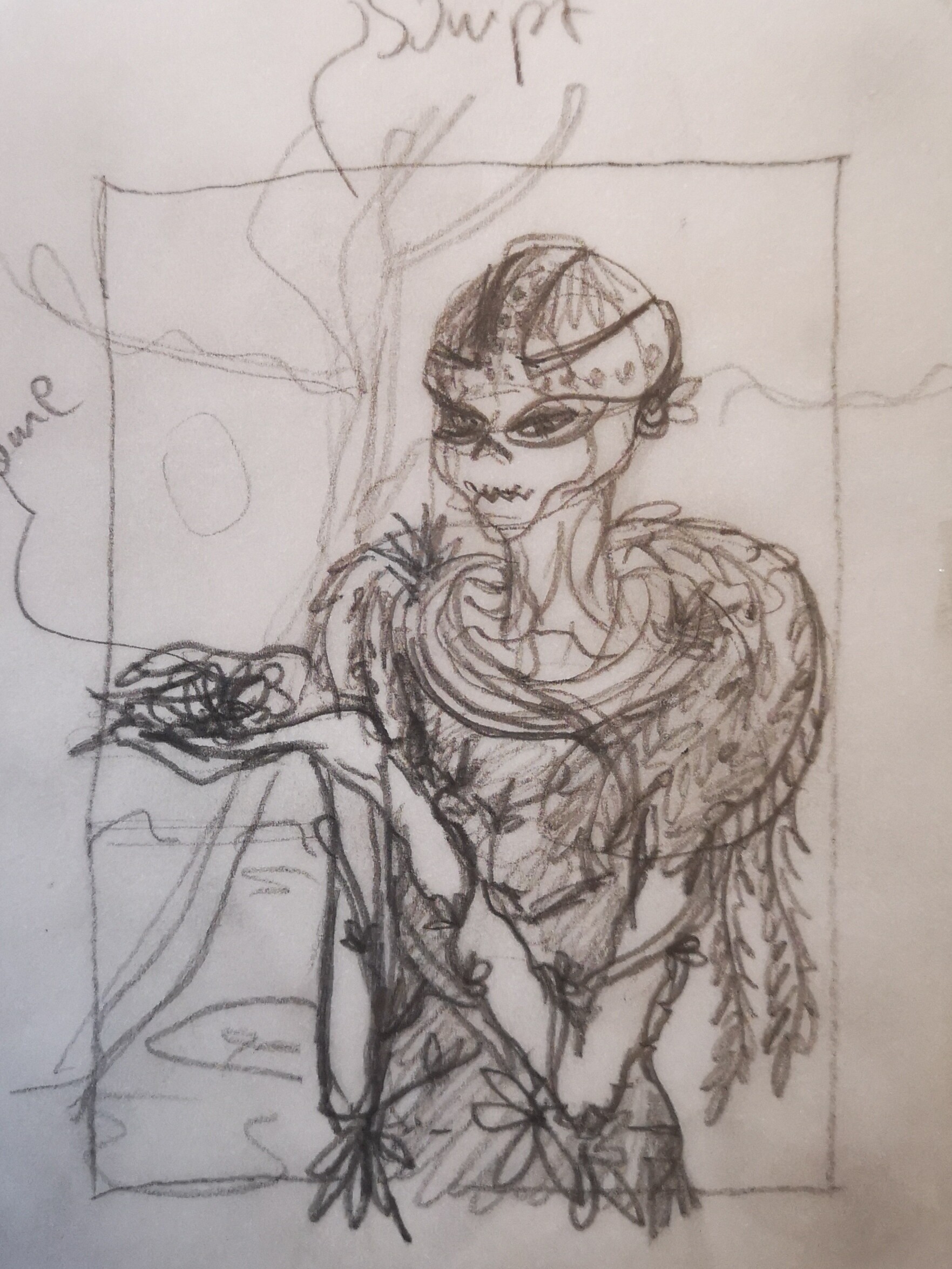 Deine Surte würde ich gerne mit einem Art Zeremonienumhang und einer Blume in den Händen darstellen, falls es in die Story passt. So als Gabe für die*den Toten.