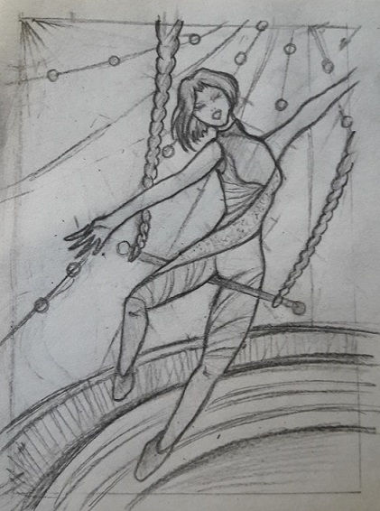 Fire zu ihren Zirkuszeiten. Glücklich bei einem Auftritt bzw. einer Probe. Hab versucht die Beschreibung des Bodys zu erfüllen.