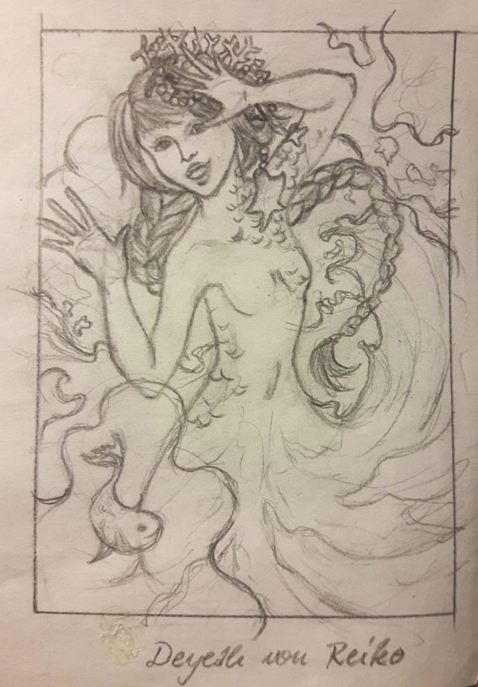 Ich wollte sie in einer dynamischen Pose darstellen und - das geb ich zu ^^- mit Wellen, Gischt etc. etwas Effekthascherei betreiben. Die Idee war ursprünglich für Kratzpapier konstruiert, aber die Lines jetzt auf Kratzpapier zu übertragen würde mich umbringen XD( ins besondere da ich keinen Plan hätte wie sowas funktioniert) - (Ganz ehrlich: die Details in ihren Haaren sind schierer WAHNSINN - wie bist du darauf gekommen dir so etwas auszudenken ;P?)