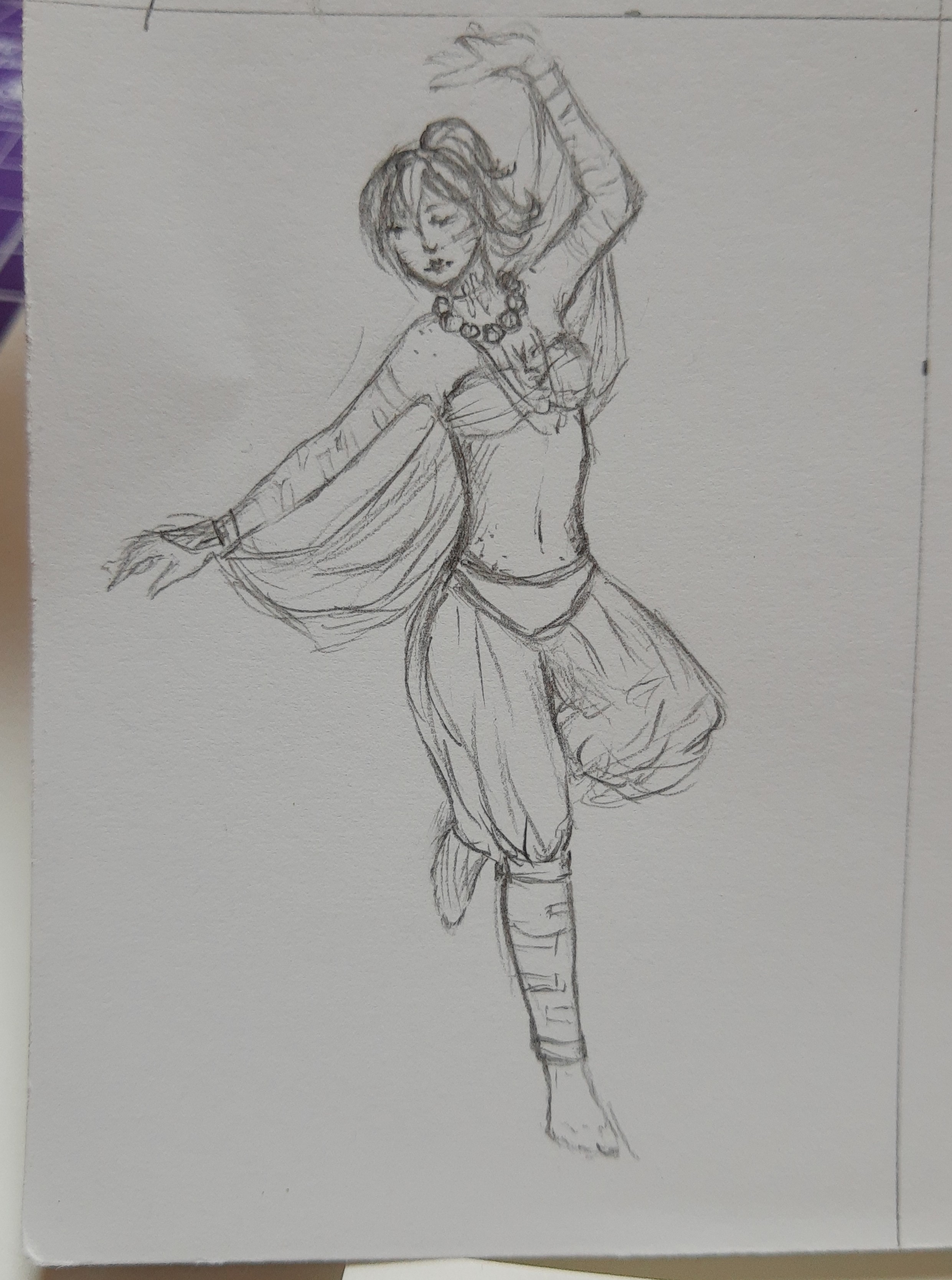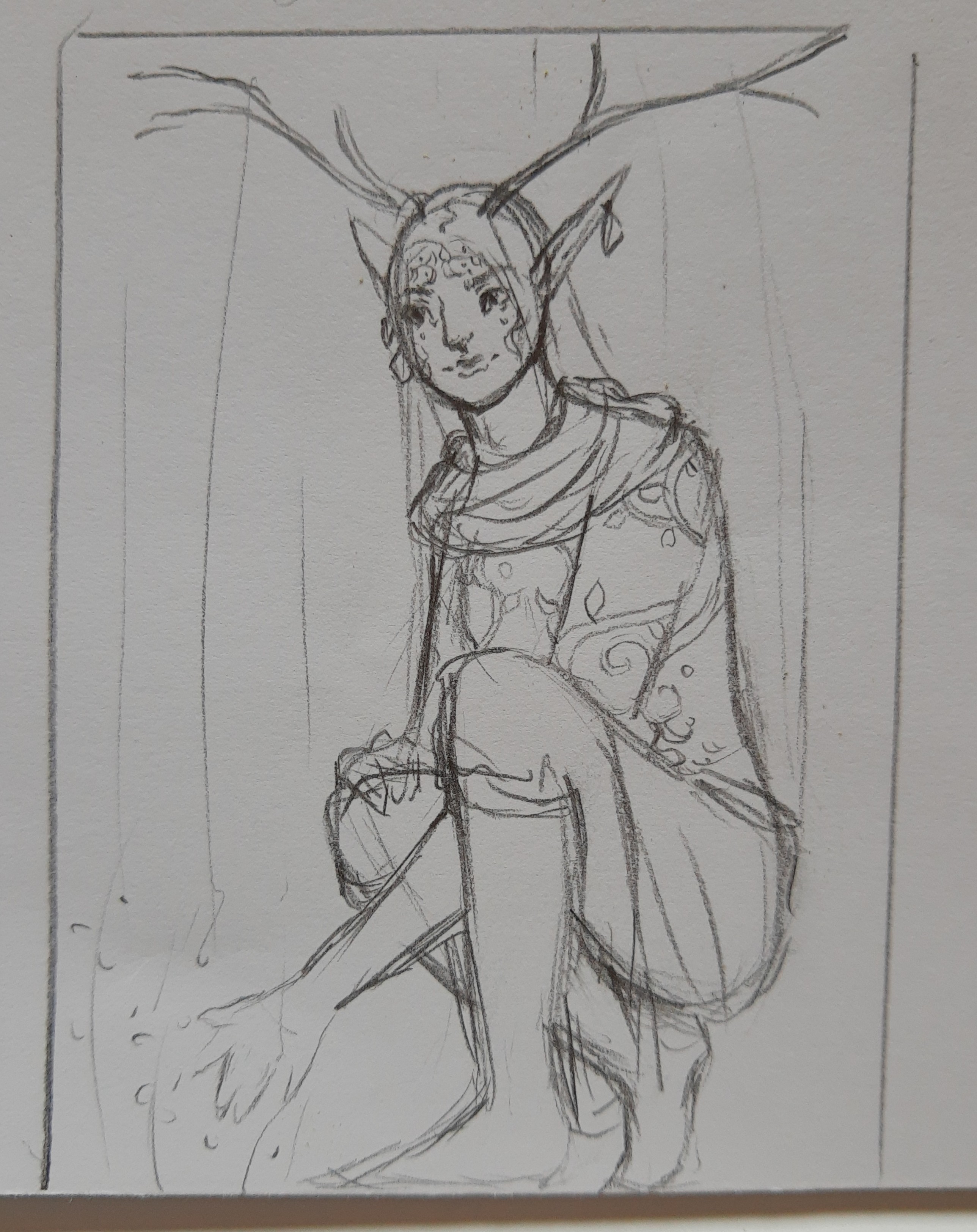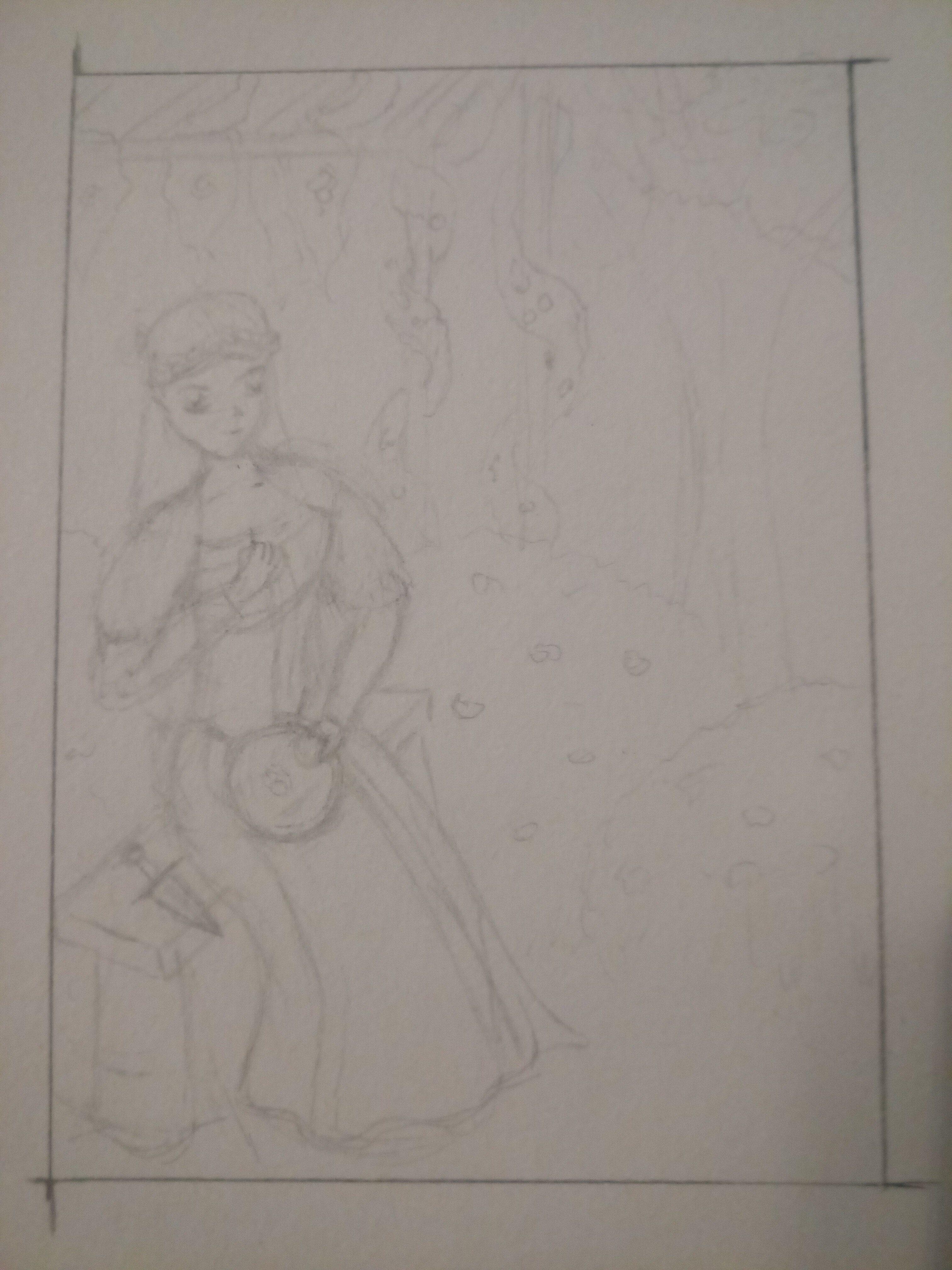 Hier ist meine Skizze für @antaresnox ich hab mich für Lady Milena stockend im Garten entschieden ich hoffe sie gefällt dir: