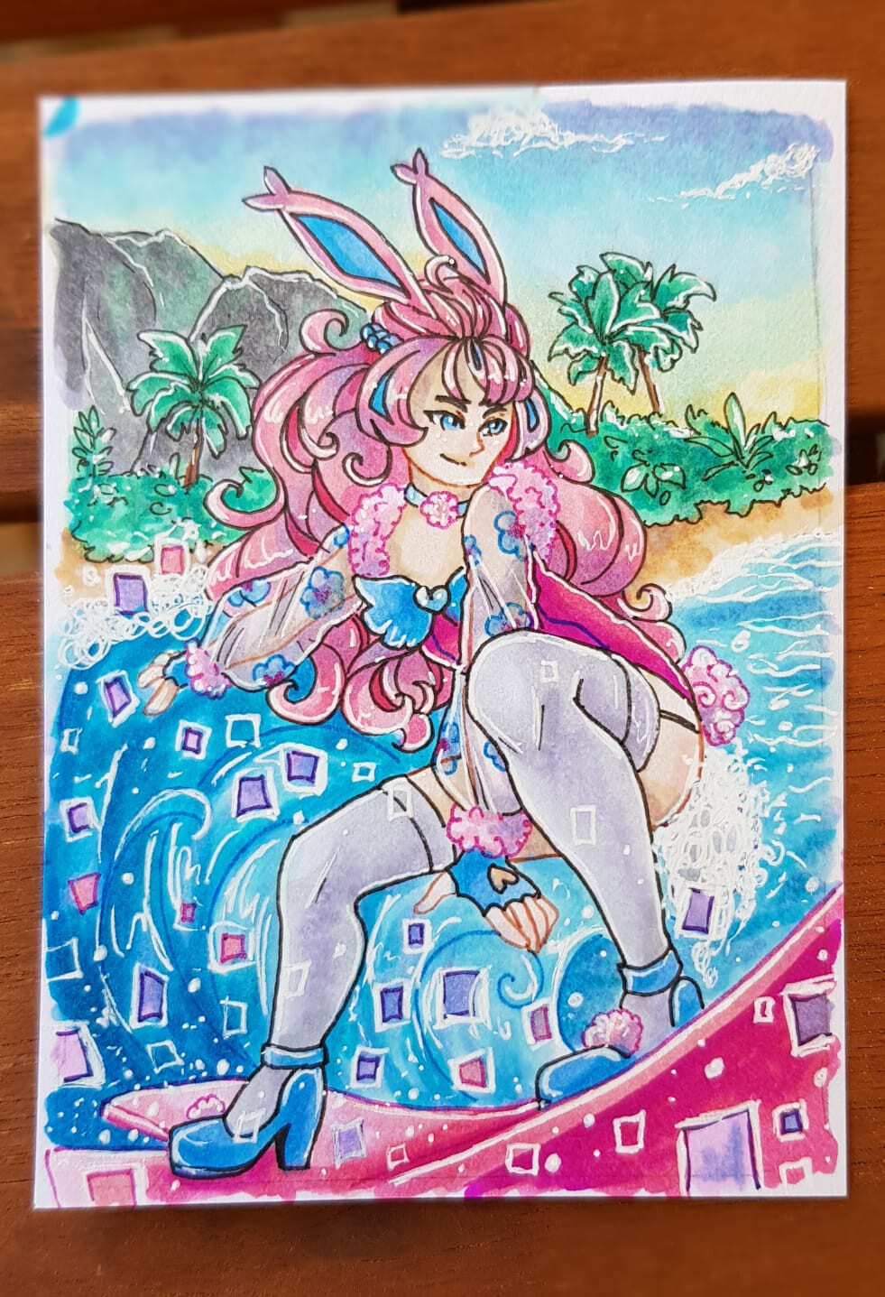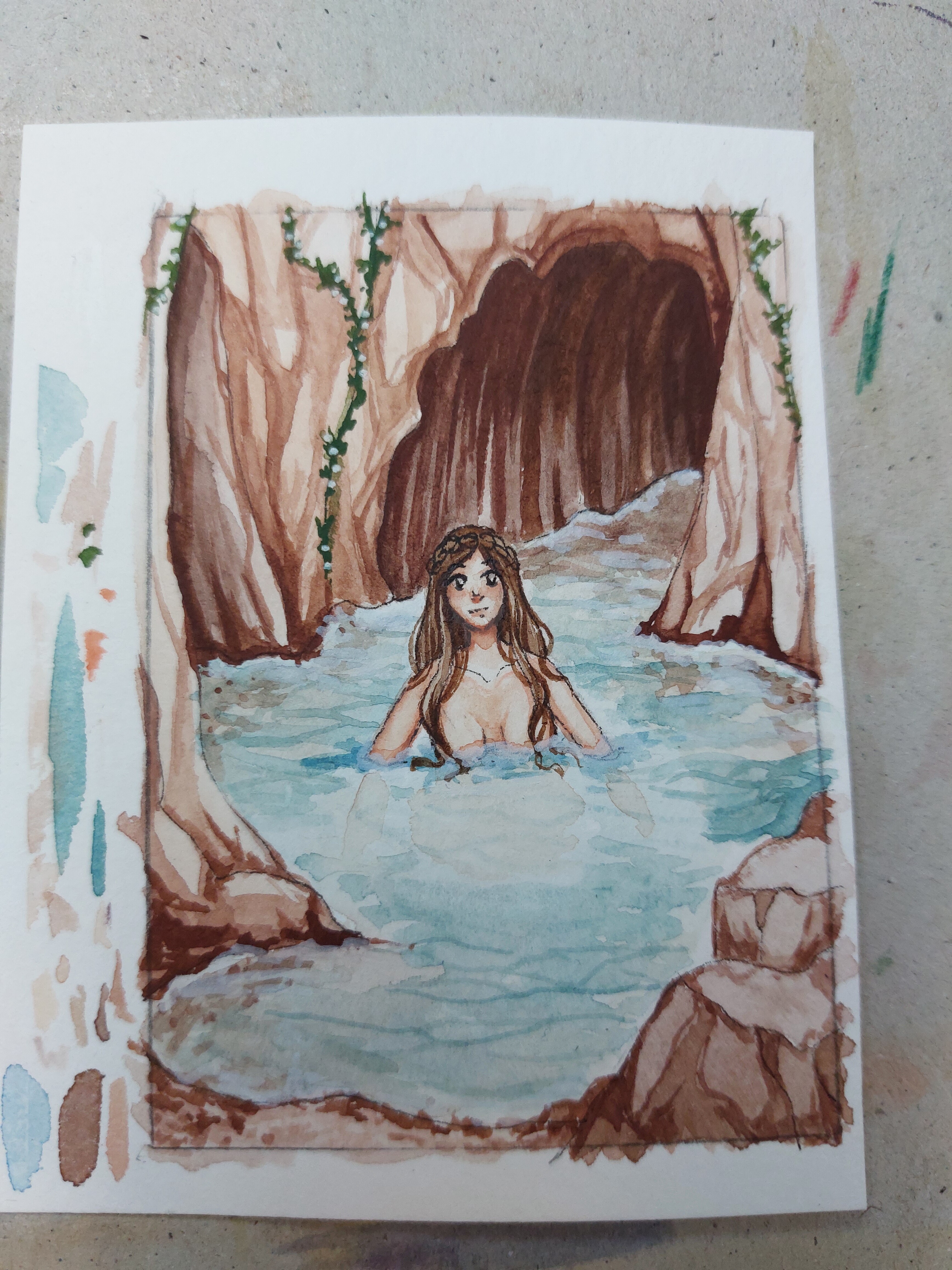 Beim Thema Meerjungfrau und Pirat kam mir, dass sie nach Schätzen tauchen könnte, die von anderen Schiffen gesunken sind. Im HG oben wollte ich auch ein Schiff andeuten.
