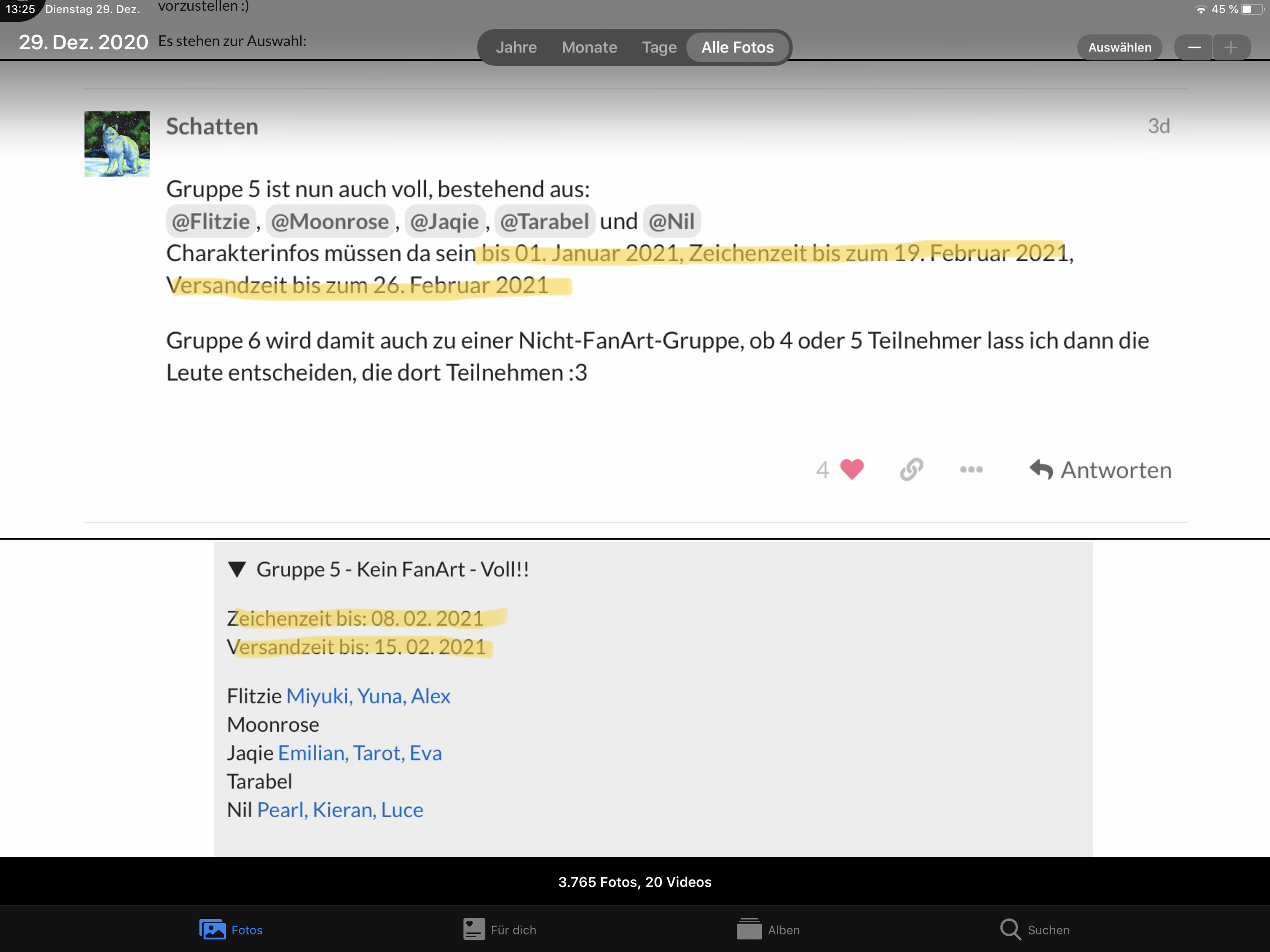 Erstmal das Wichtie, Gruppe 6 ist vollständig und besteht aus:
