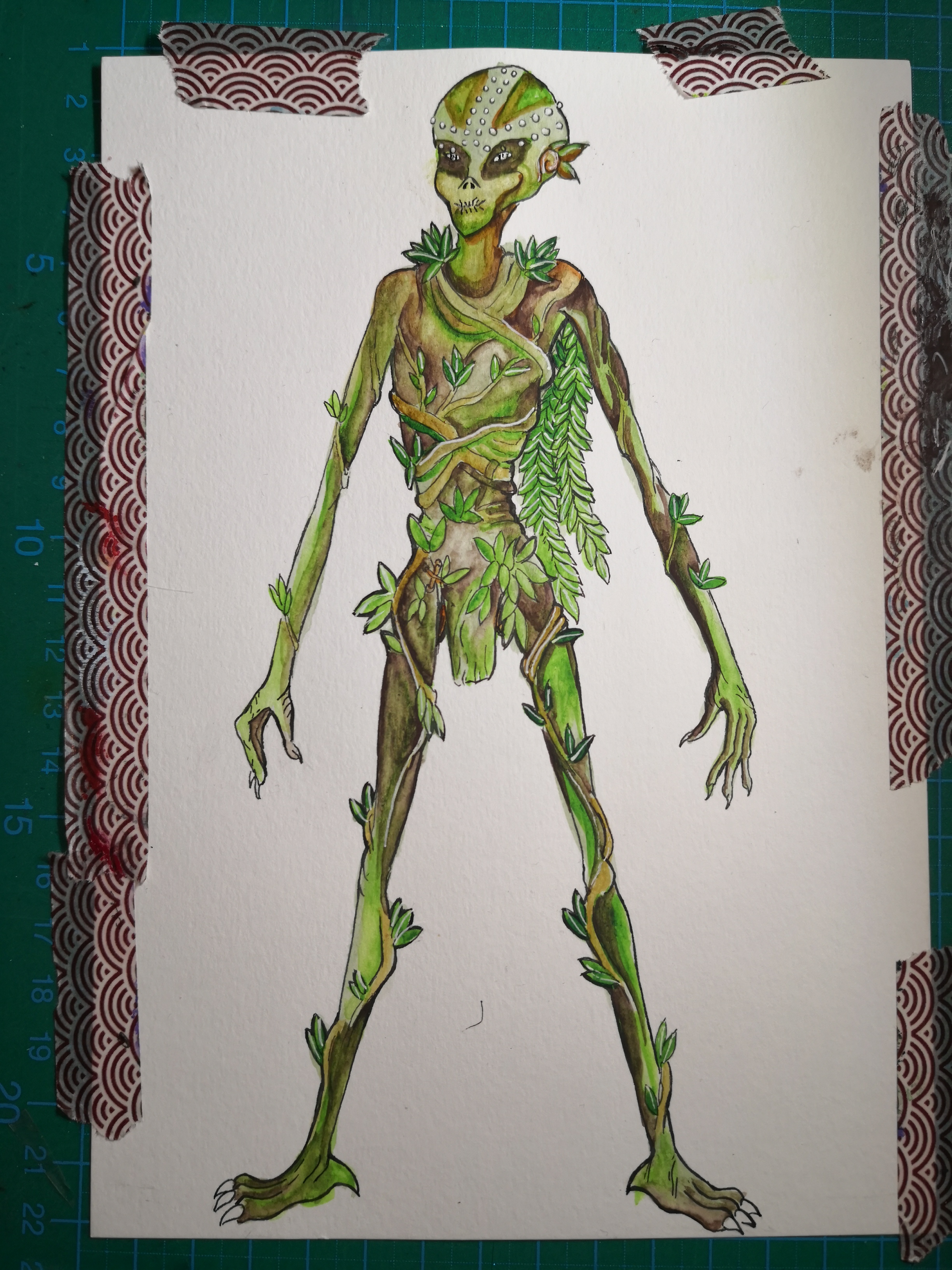 Deltabewohnerin im Mirrordelta (Das größte Feuchtgebiet im Land. Ein alter Wald mit vielen Flussläufen, Totarmen und morastigen Gebieten.) Sie ist ein Pflanzenwesen. Die Deltabewohner sind zweigeschlechtlich, können sich aber als eher männlich oder weiblich (oder irgendwas dazwischen) verstehen. Surte sieht sich eher weiblich. Sie ist die Schamanin der Gruppe.