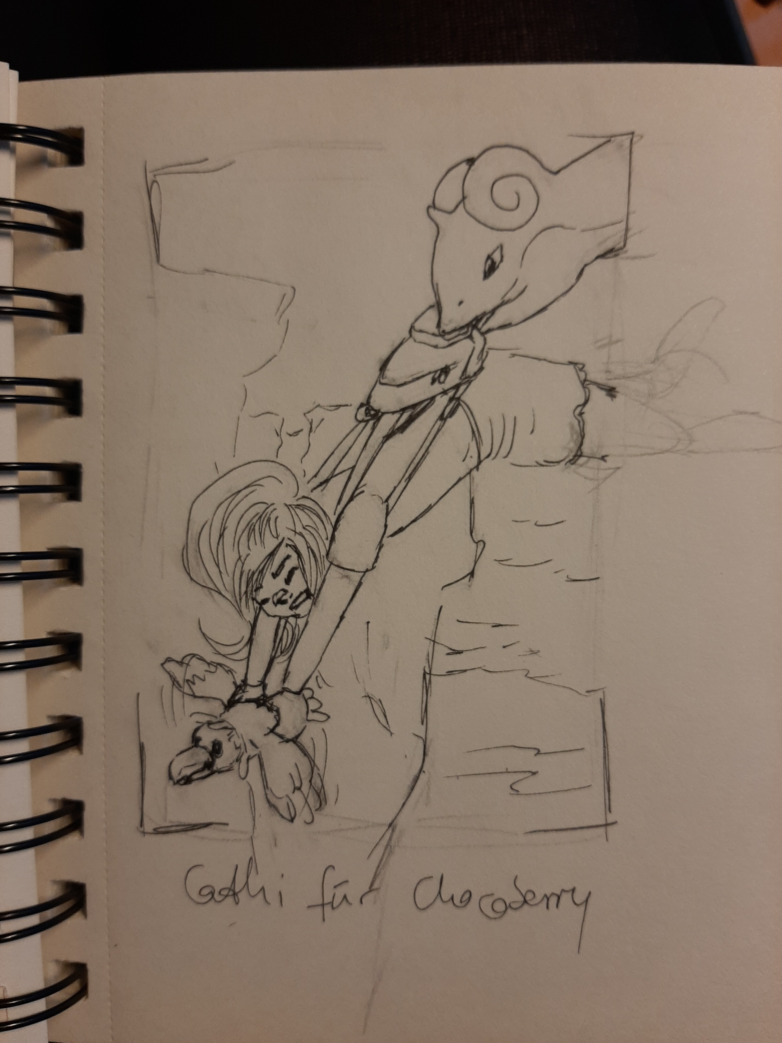 Crappy Skizzen (auf der Zugfahrt entstanden, deshalb reichlich krikkelig, aber ich denke mal erkennbar…) für @anon8037352 und @Chocoberry !