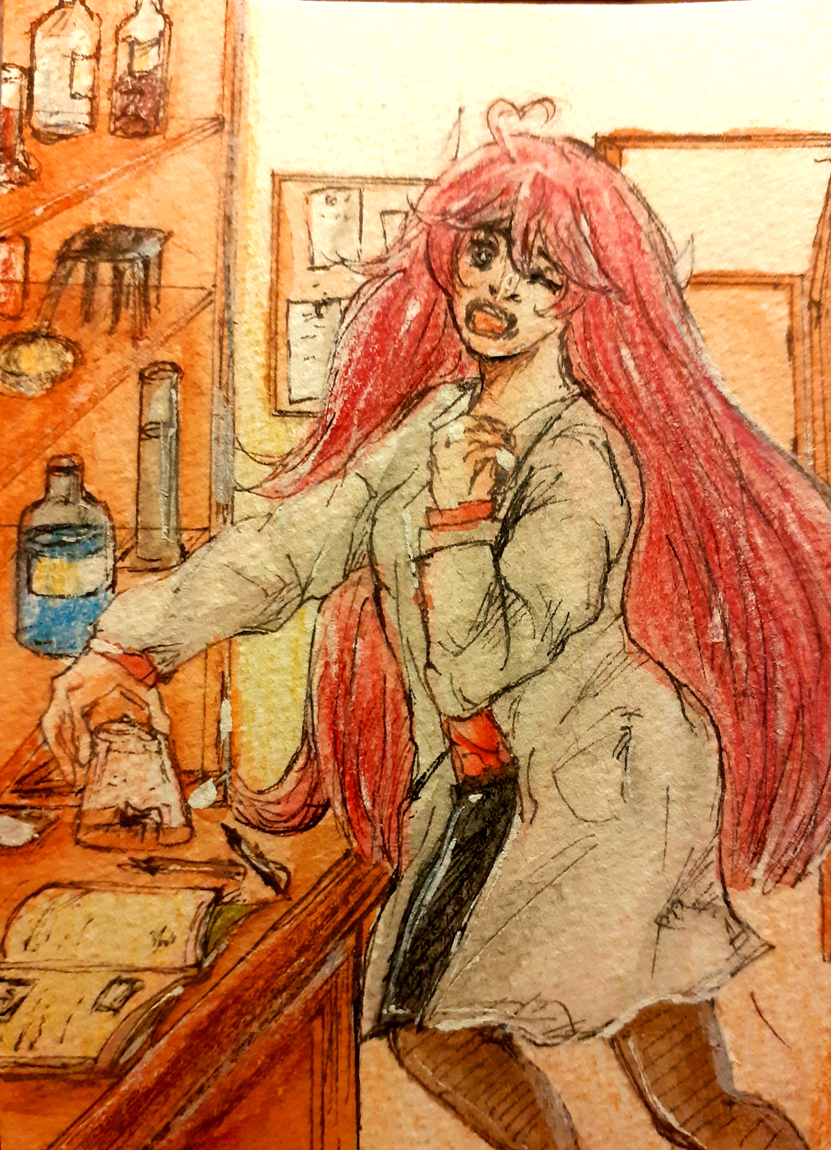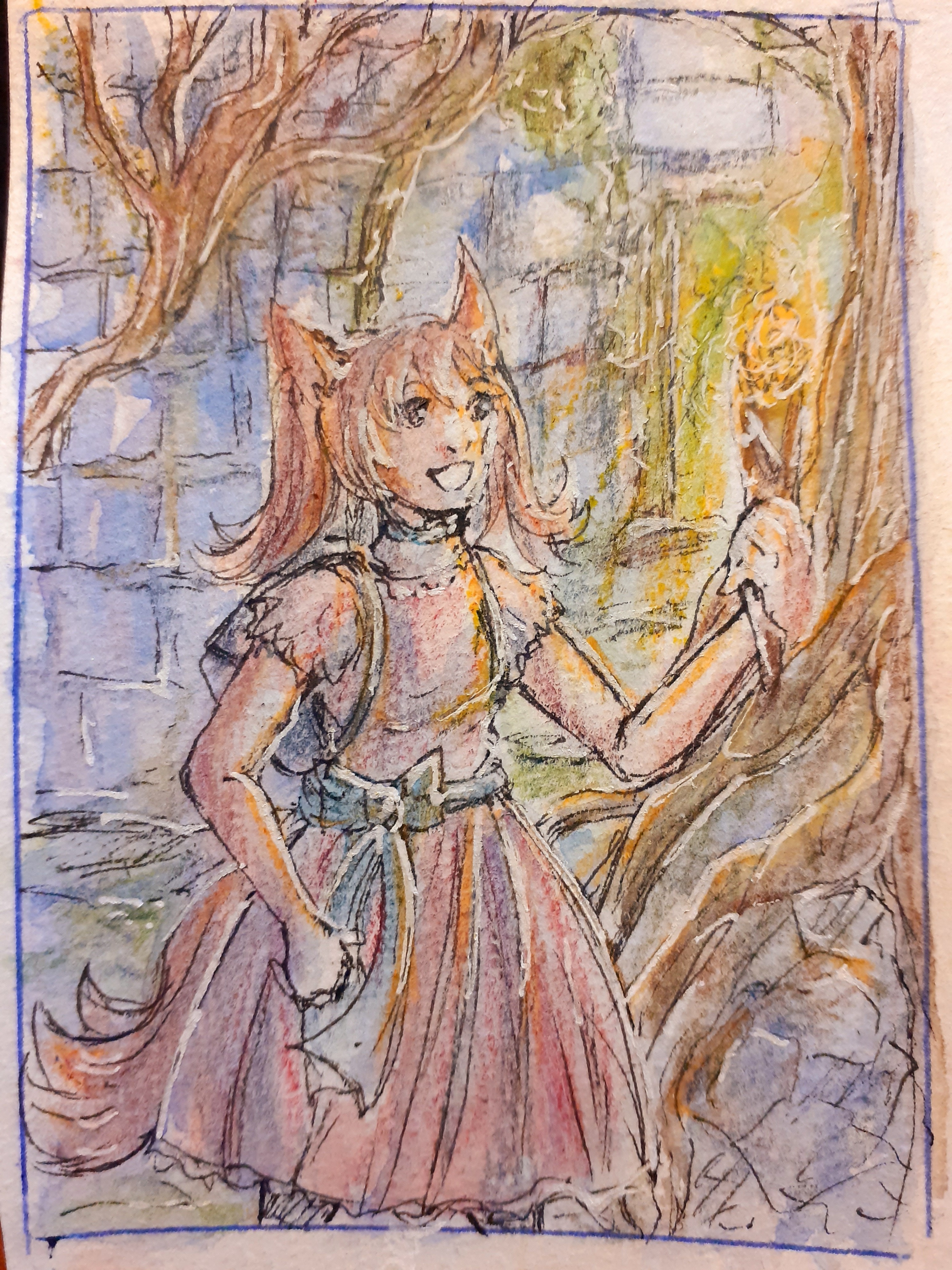 Ich habe mir gedacht ich male Luce mit dem Hund von Kieran. Nachdem du geschrieben hast, dass er mit dem Hund auf Erkundungstouren geht, dachte ich mir ich versuche so eine Erkundung aufs Papier zu bekommen. Das Grün um die beiden herum wird natürlich noch detaillierter. (Hat der Hund eigentlich einen Namen? Habe keinen gefunden.)
