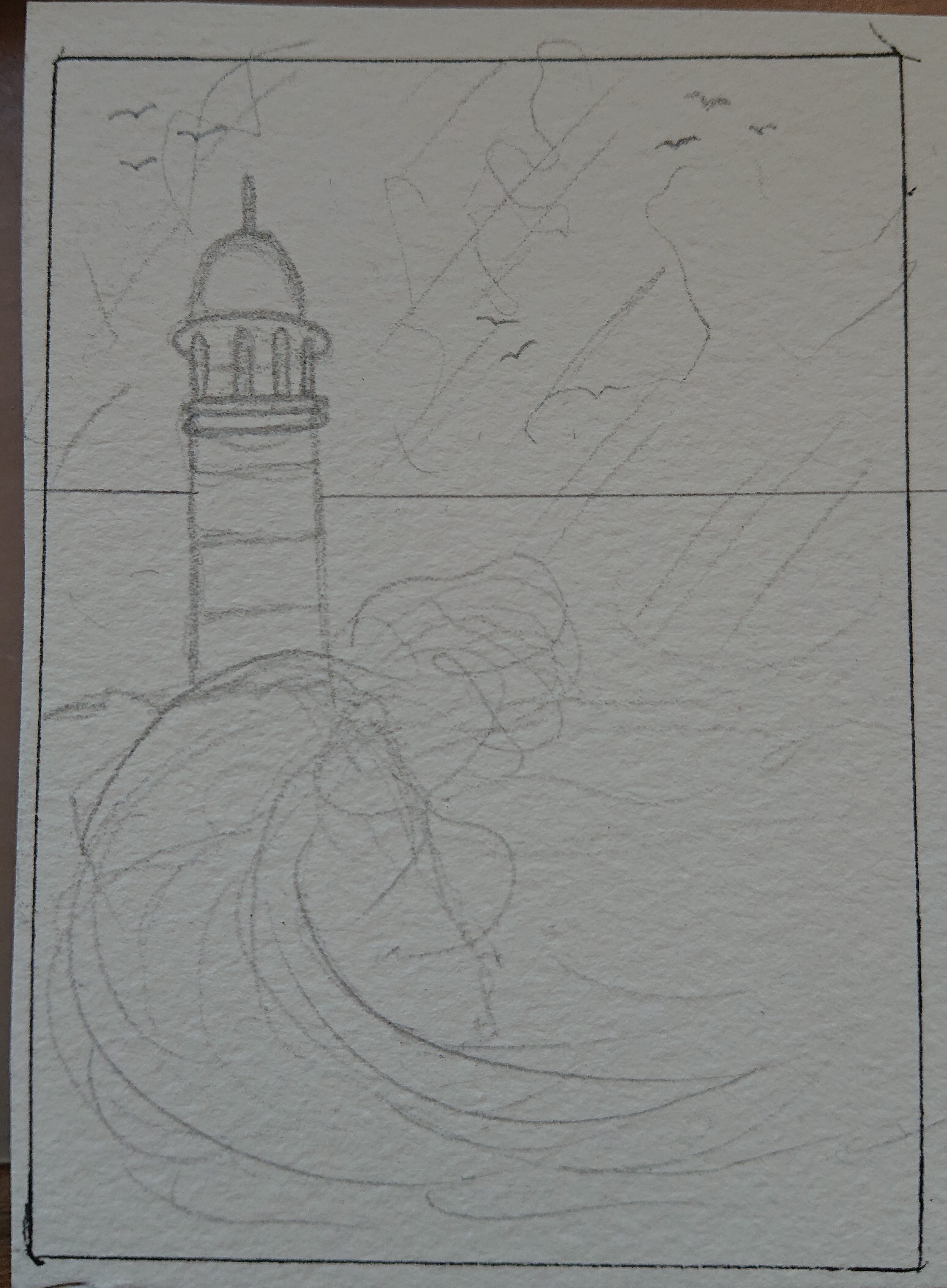 Und die Konzept Skizze für @Ginko. Küste, Gischt, Regen.