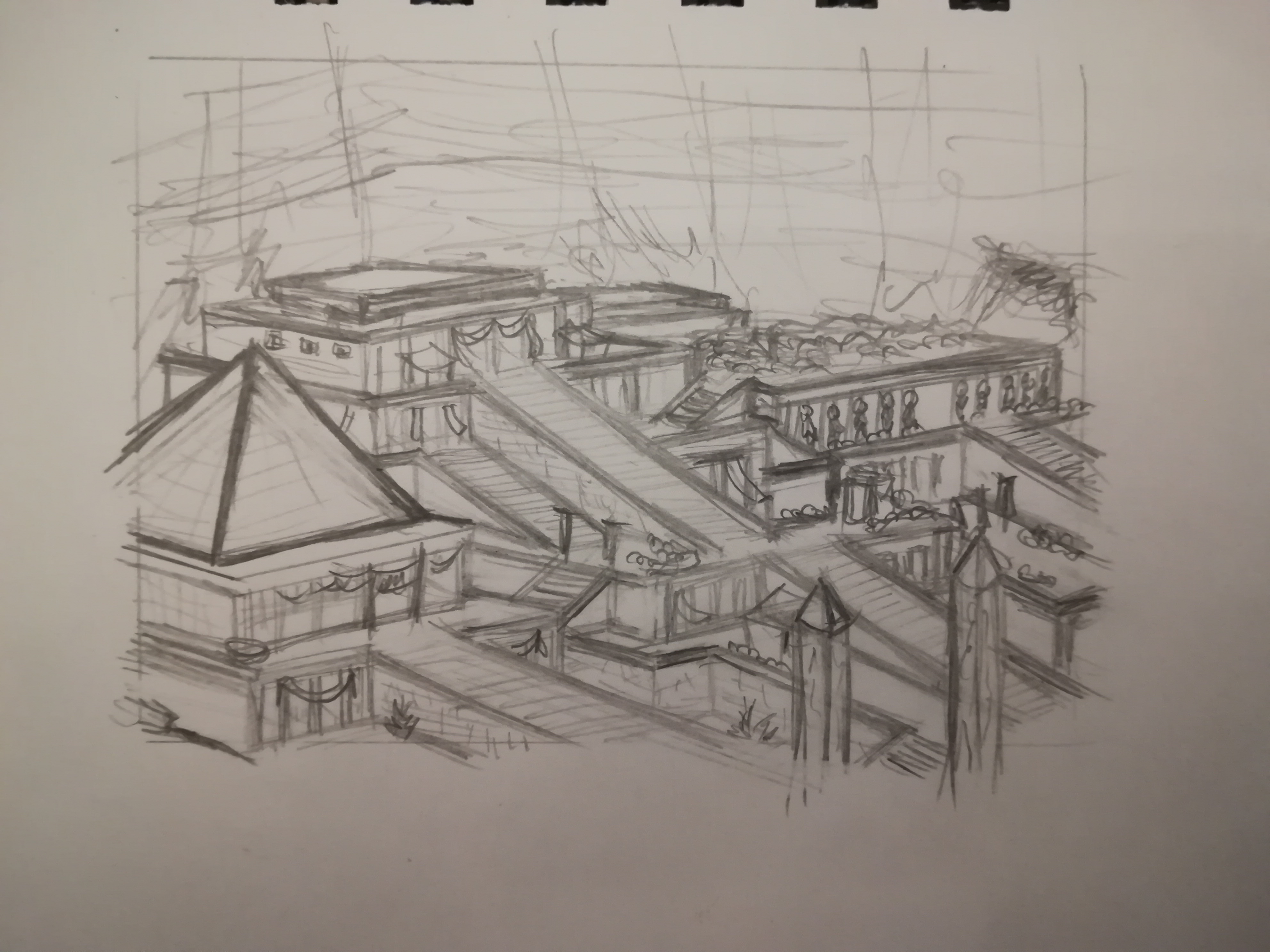Ich skizziere gerade den Hatschepsut-Tempel und würde ihn gerne aus dieser Perspektive darstellen: