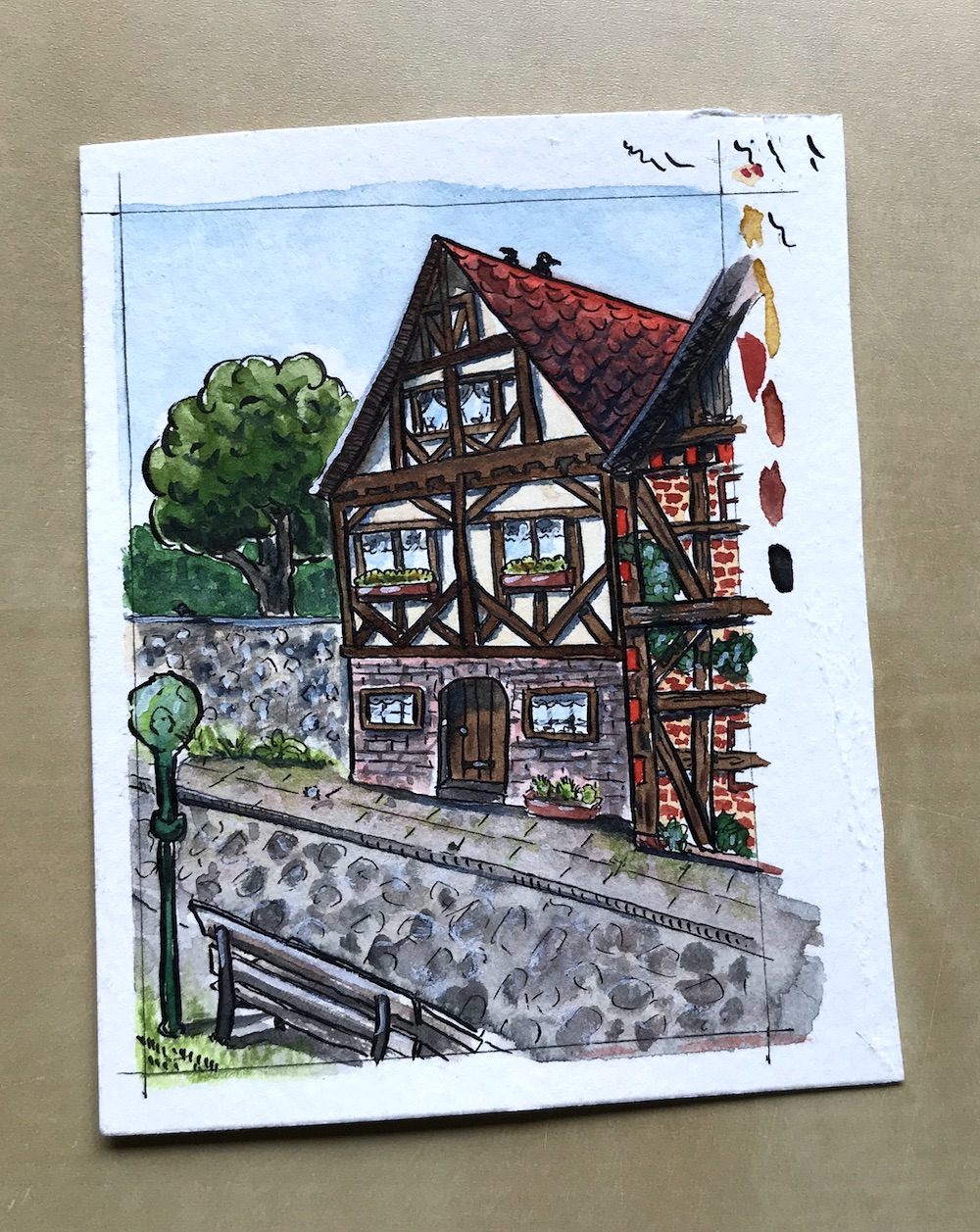 Ich glaub aber ich muss die erste Version nehmen, weil da einfach so viele feine Graunuancen drinnen sind und die Aquarellstruktur im Himmel so schön rauskommt, echt toll!
