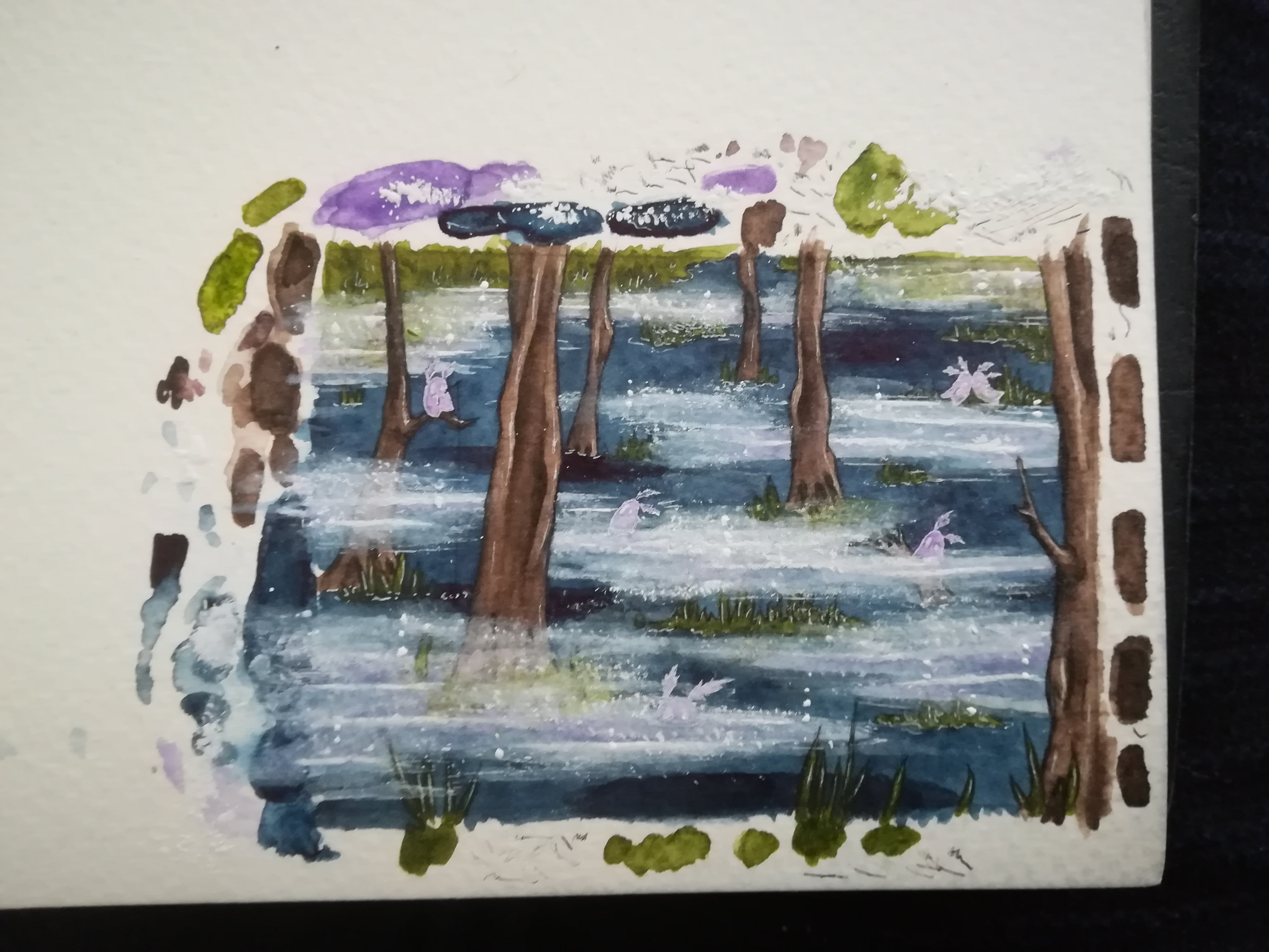 Am besten immer Referenzen angucken und basierend darauf stilisieren. Diese “Nebelfetzen” die du darstellen wolltest sidn meist wolkiger und haben mehr “Körper”. Dein Nebel wirkt eher flach auf einer horizontalen Ebene, also fast mehr wie Wasserreflexionen, würde er nicht ein Stück über der Wasseroberfläche schweben.