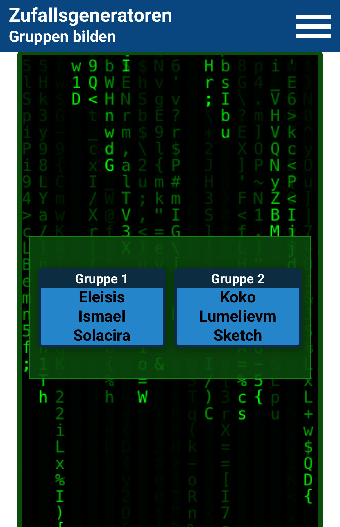 Hab jetzt die Gruppen ausgelost und diese Kombination raus: