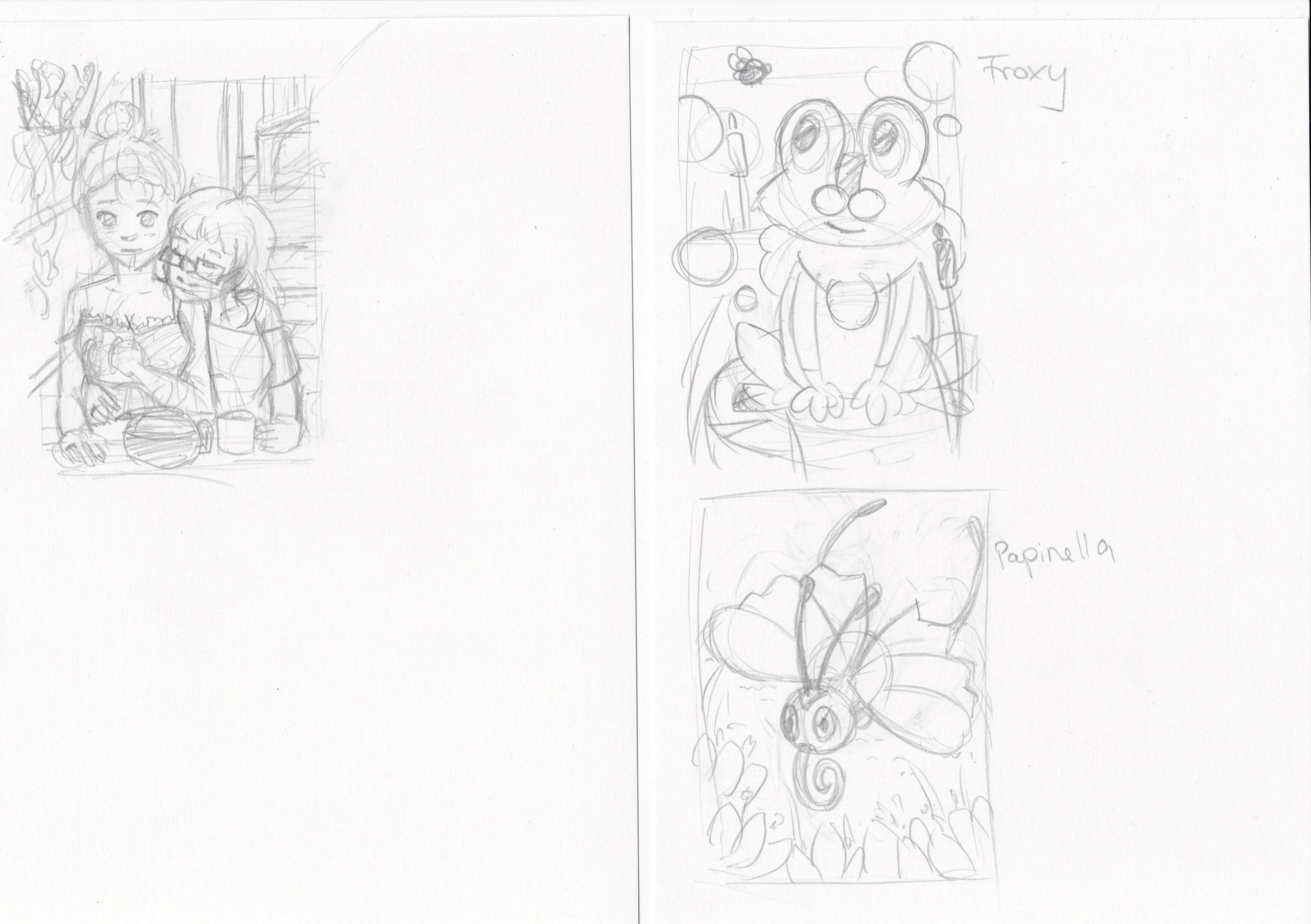 Und für @Vulnonchen hätte ich aktuell die beiden Pokemonskizzen. Ich würde zu Froxy tendieren, kann aber auch gerne Papinella zeichnen, je nach dem, was du lieber hättest :)