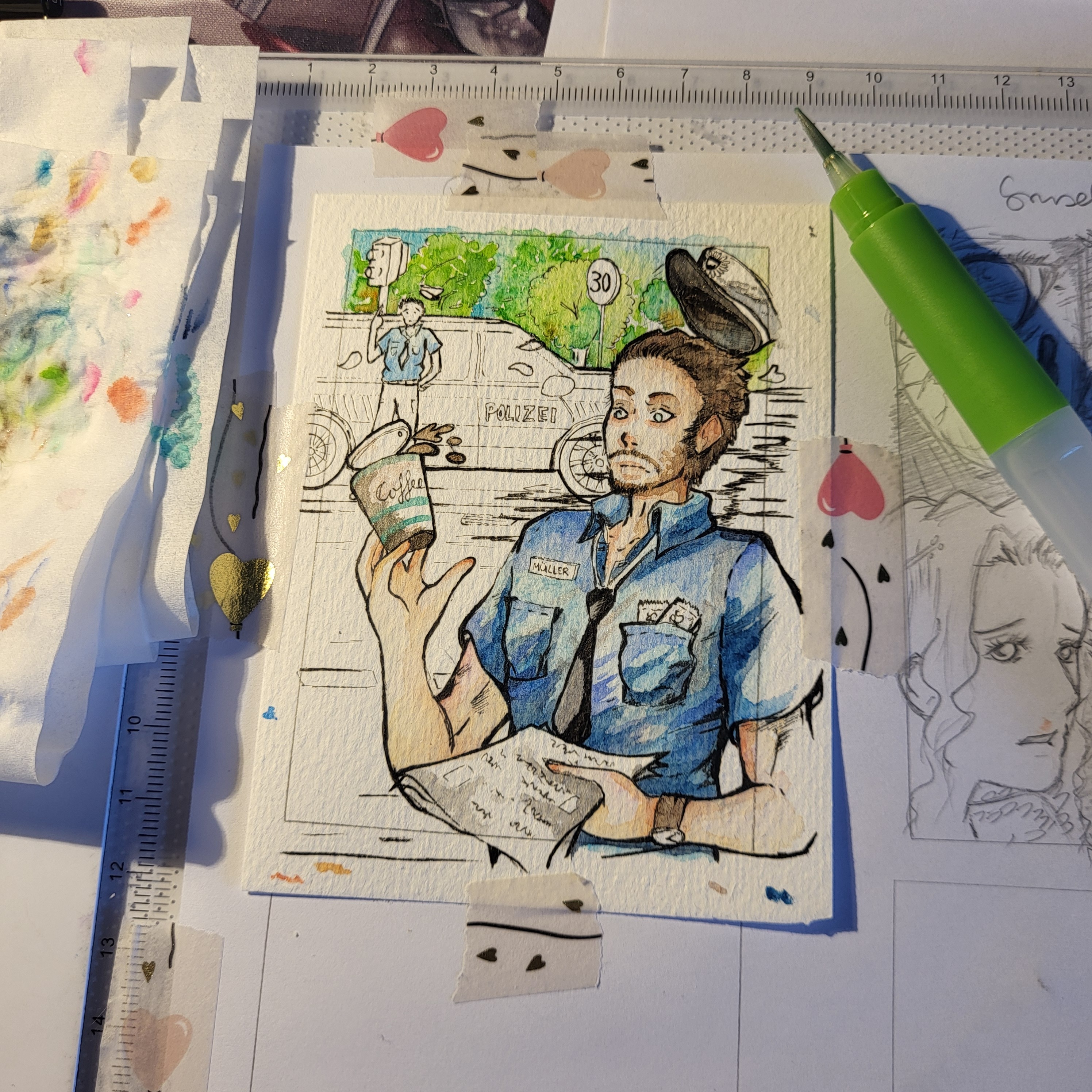 Die Lines mit Buntstifte zu machen wäre aber sehr untypisch für mich, das mache ich nie. Ich nutze ausschließlich Liner verschiedener Farben von Copic, Sakura, Neopiko und co. Wenn du keine bunten Liner hast, ist schwarz auch vollkommen ok, nur Buntstiftlines fände ich tatsächlich unpassend. Die haben ja einfach ne ganz spezielle Optik.