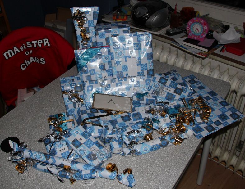 Wuhuuuu :wiiii: … ich bin endlich daheim und kann meinen Kalender bestaunen! Es ist wirklich erstaunlich, wie sehr man sich darüber freut^^. Meine Mama musste kommen und alles begutachten, nachdem ich ausgepackt hatte xD. Ich bin schon sehr auf die Inhalte gespannt, besonders, weil sie soooo viel geraschelt, geklingelt, geknistert, geklappert, … haben beim Auspacken. Also ein Kalender für alle Sinne, denn seit ich ihn ausgepackt habe, riecht es ganz herrlich ruchtig in meinem Zimmer <3.
