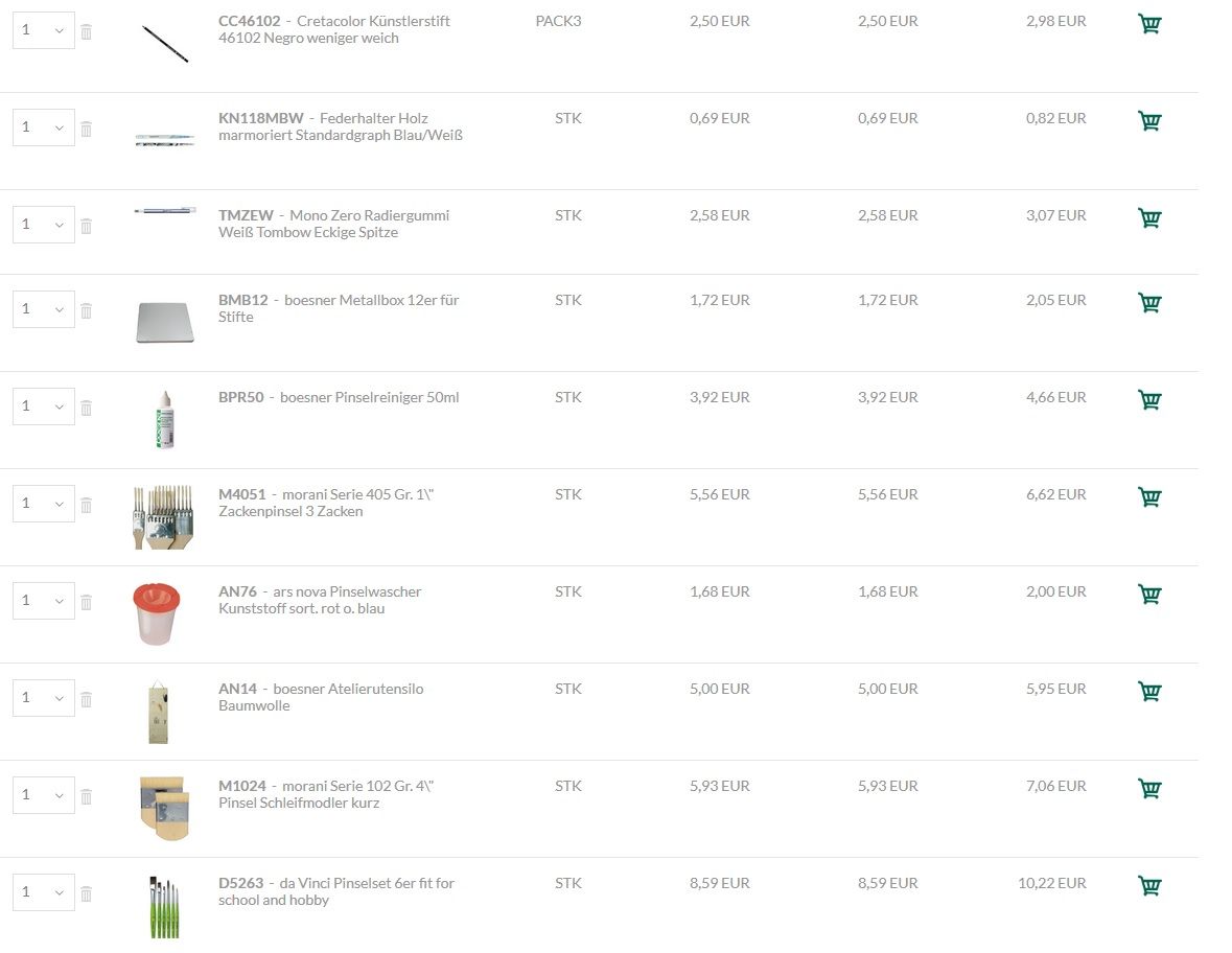 - Ölfarben entsprechend auch nicht. Ebenso Leinwände, Malpappen, etc. dafür.