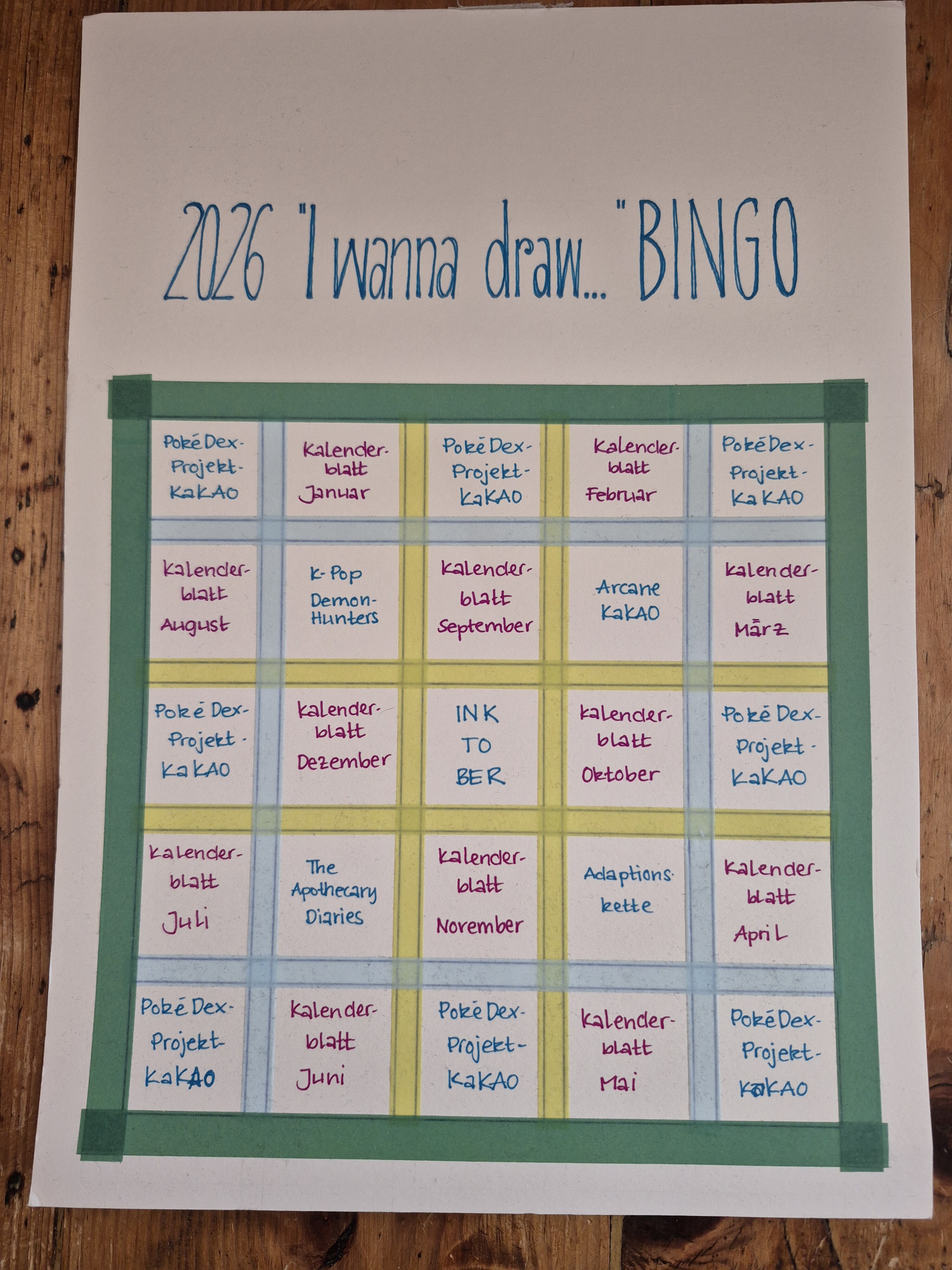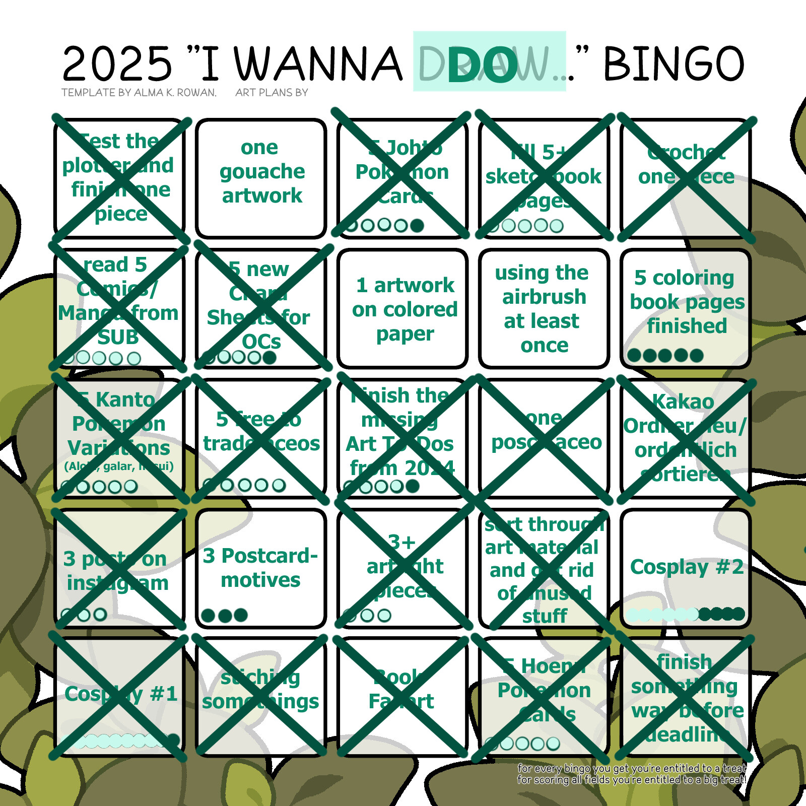 Ich war bei meinen Vorhaben für 2025 tatsächlich gar nicht so schlecht dabei und hatte am Ende sogar 4 Bingos, nachdem ich die letzten Tage nochmal “schnell” ein paar Pokemon gezeichnet habe xD