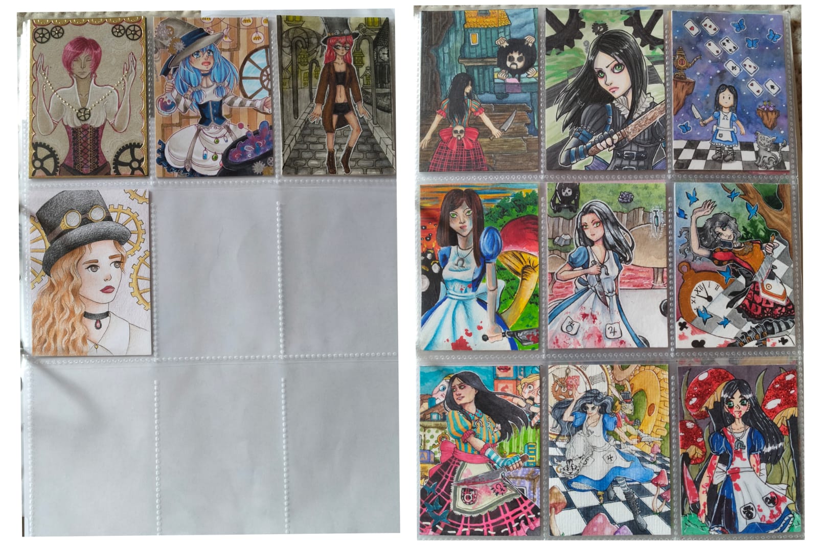 Ein paar Steampunk Karten und unsere Alice madness returns und Alice Im Wunderland Sammlung, außerdem ein paar Karten zum Thema Ever After High