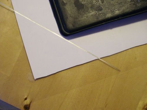 Hier habe ich die ersten oberen Zentimeter nach der Anleitung angeklebt: Die Bindefolie verschiebt sich nicht mehr und jetzt kann ich mir das Geodreieck schnappen.